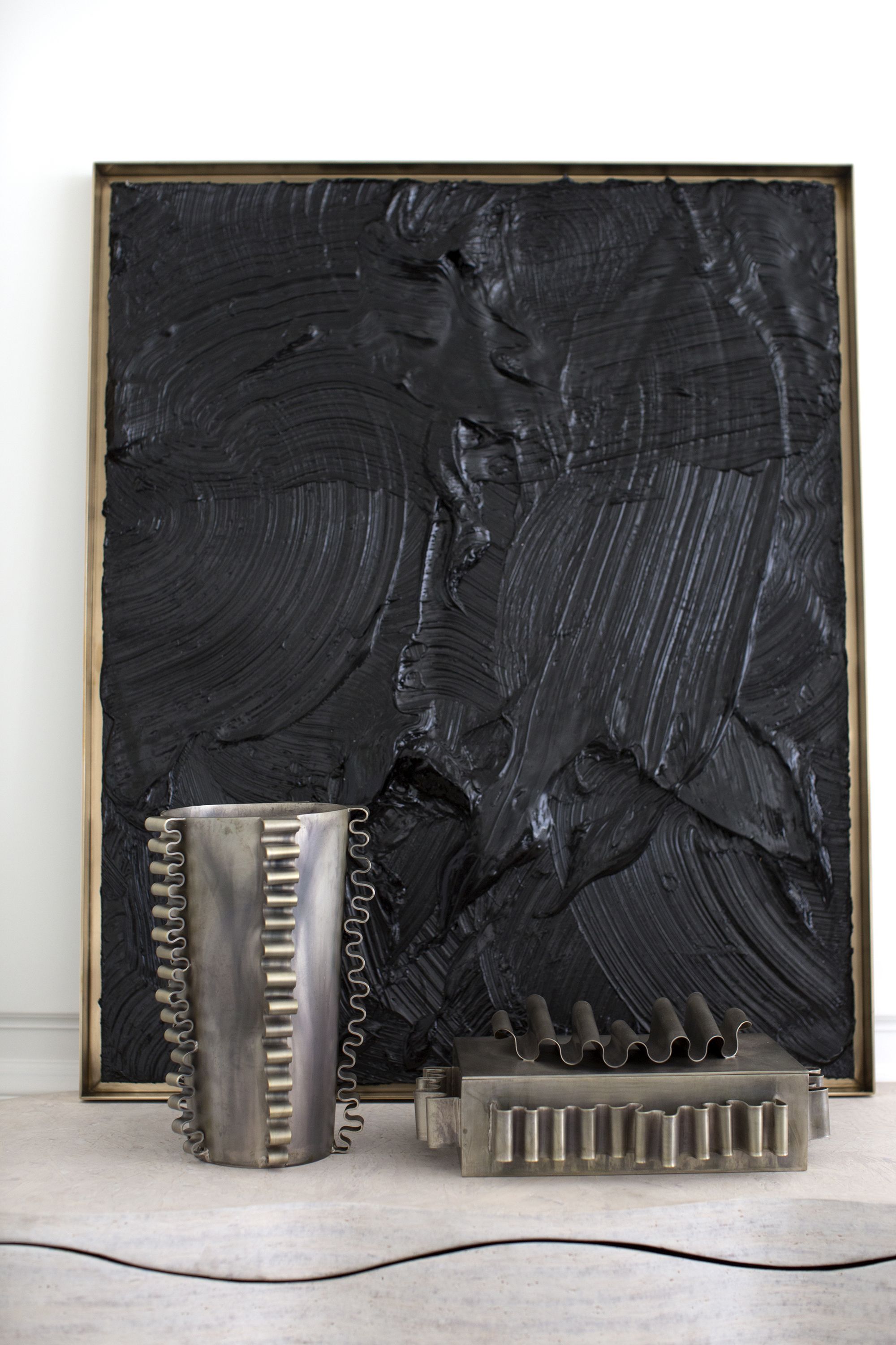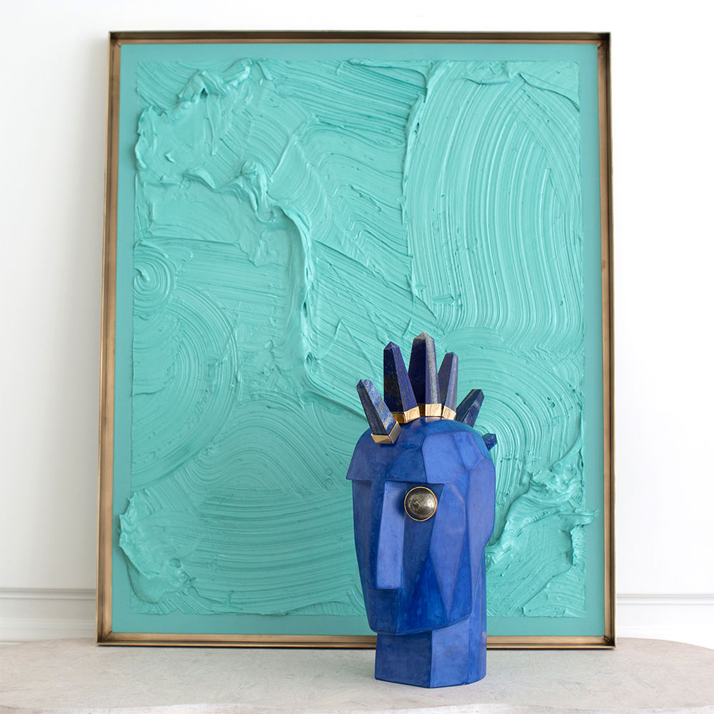 这款现代而独特的作品由石膏和坚实的青铜框架组成,汲取了Kelly对几何形状的喜爱,丰富的质感和大胆的意想不到的色调。