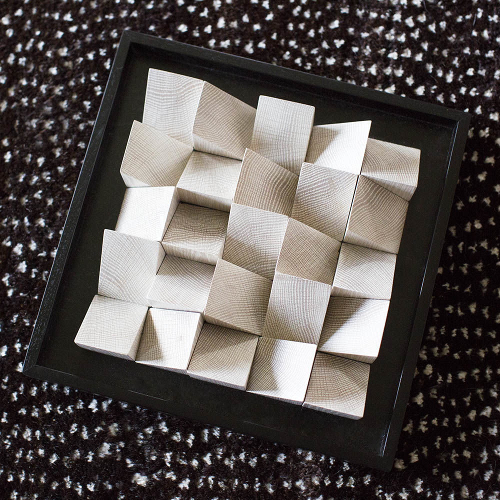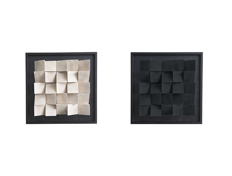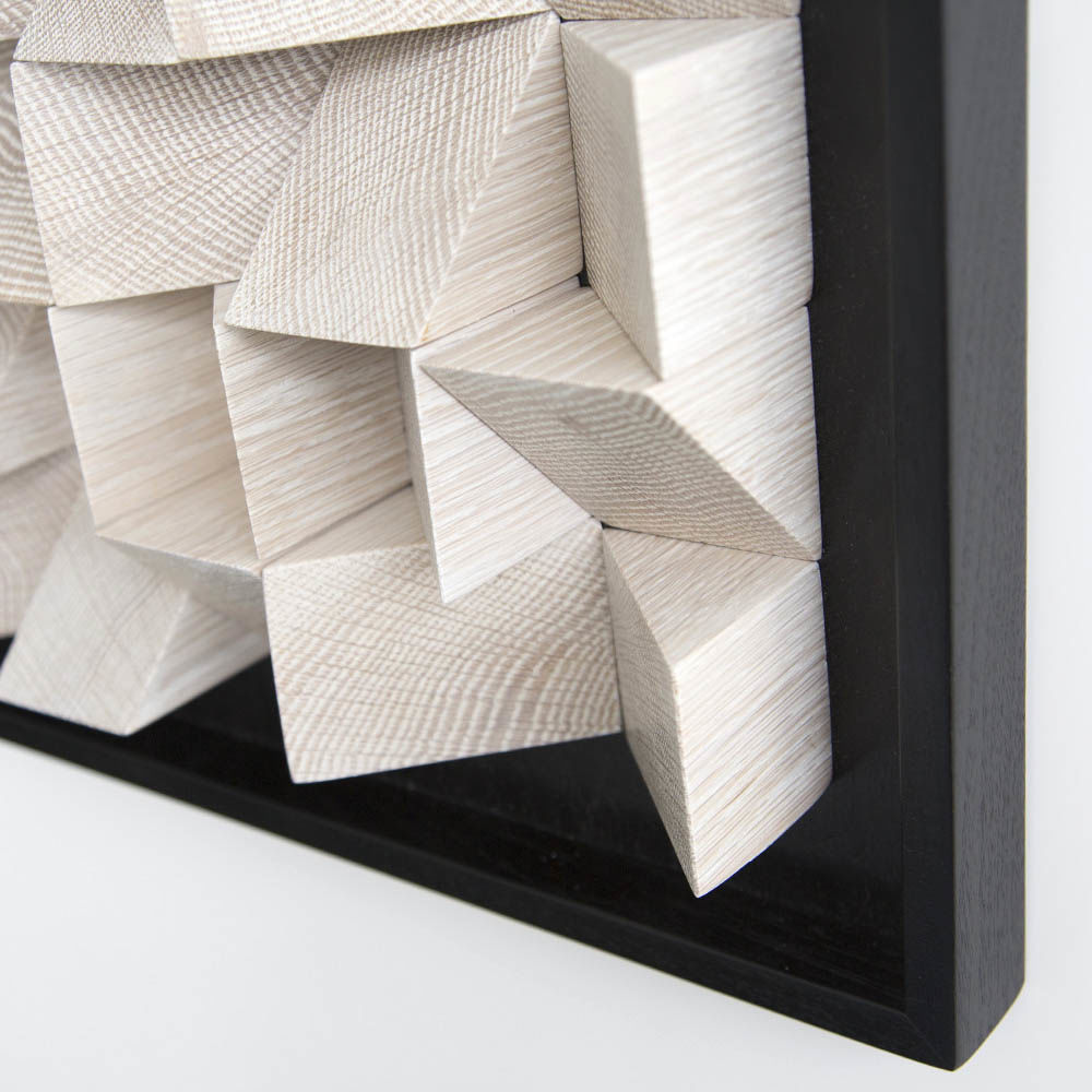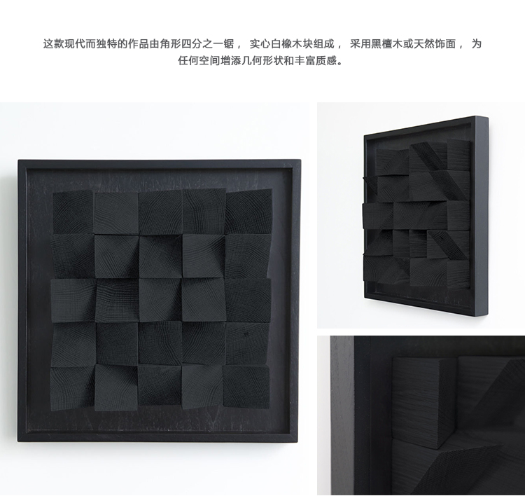 这款现代而独特的作品由角形四分之一锯,实心白橡木块组成,采用黑檀木或天然饰面,为任何空间增添几何形状和丰富质感。 你可以看到它从多个角度或照明条件下产生的变化; 当光在纹理表面上移动时,阴影会变得十分有趣。