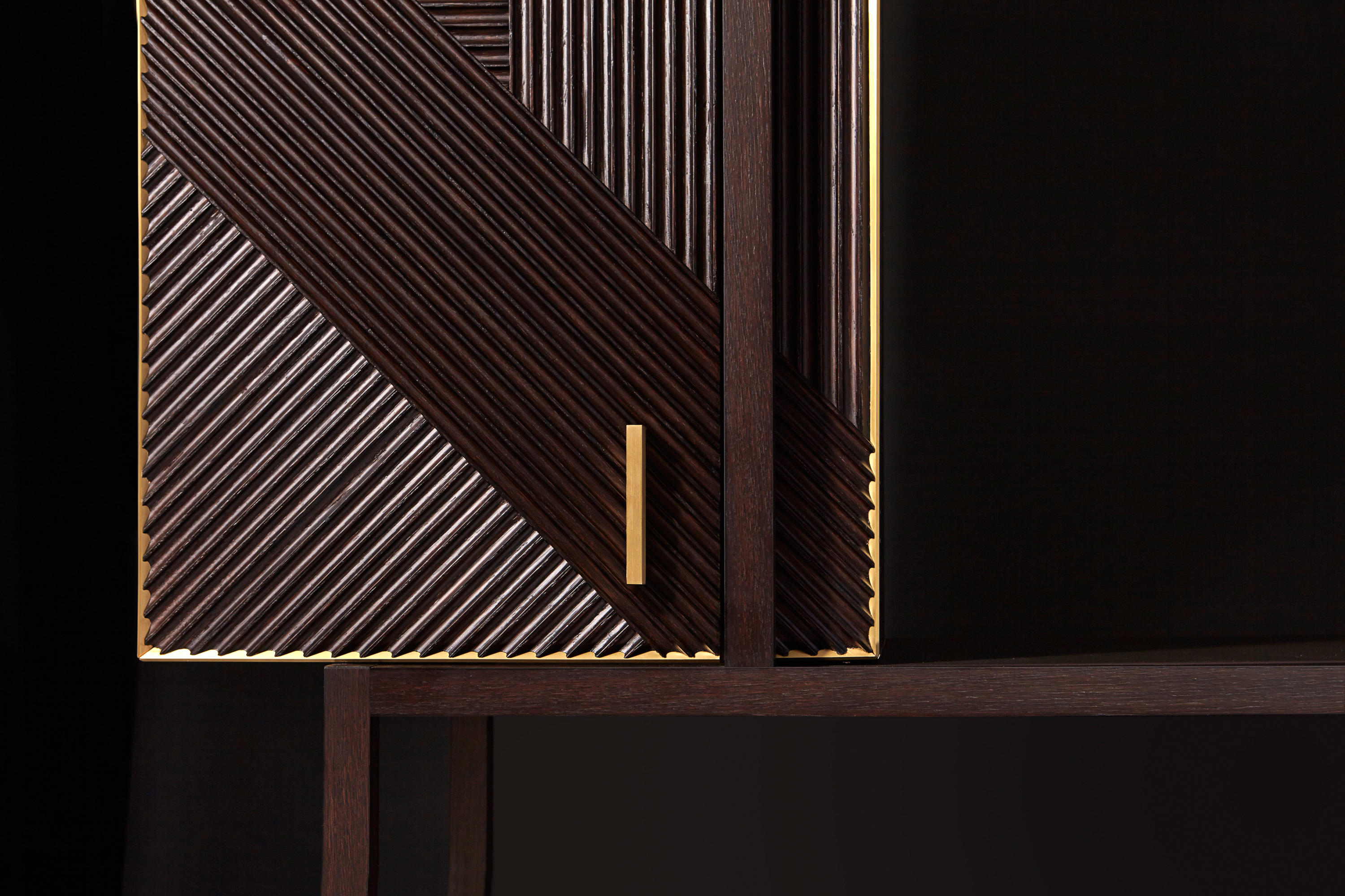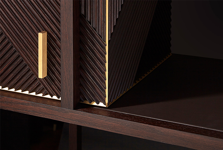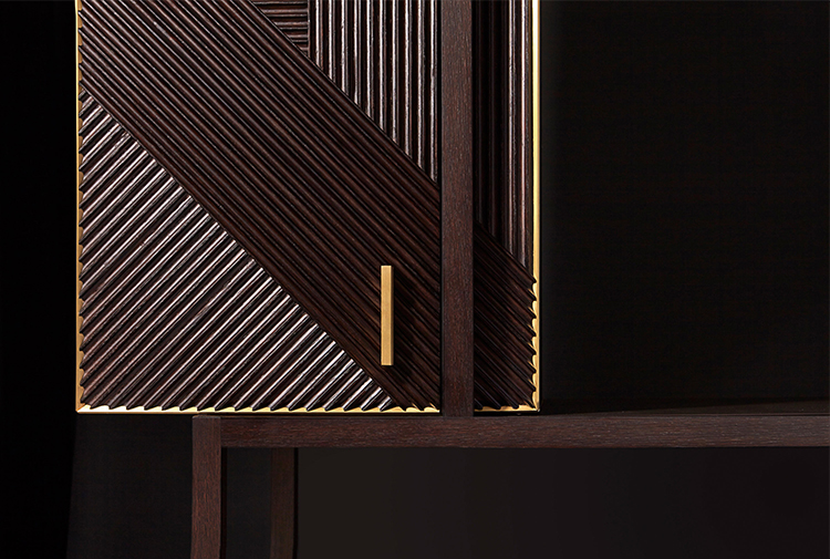 凭借其功能性设计,这款灵活的复古风格橱柜营造出简约的几何形状,并在完整空间和空间之间实现完美平衡 典型的表面处理采用交织的橡木编织,手工打磨和涂漆,具有极佳的视觉冲击力。