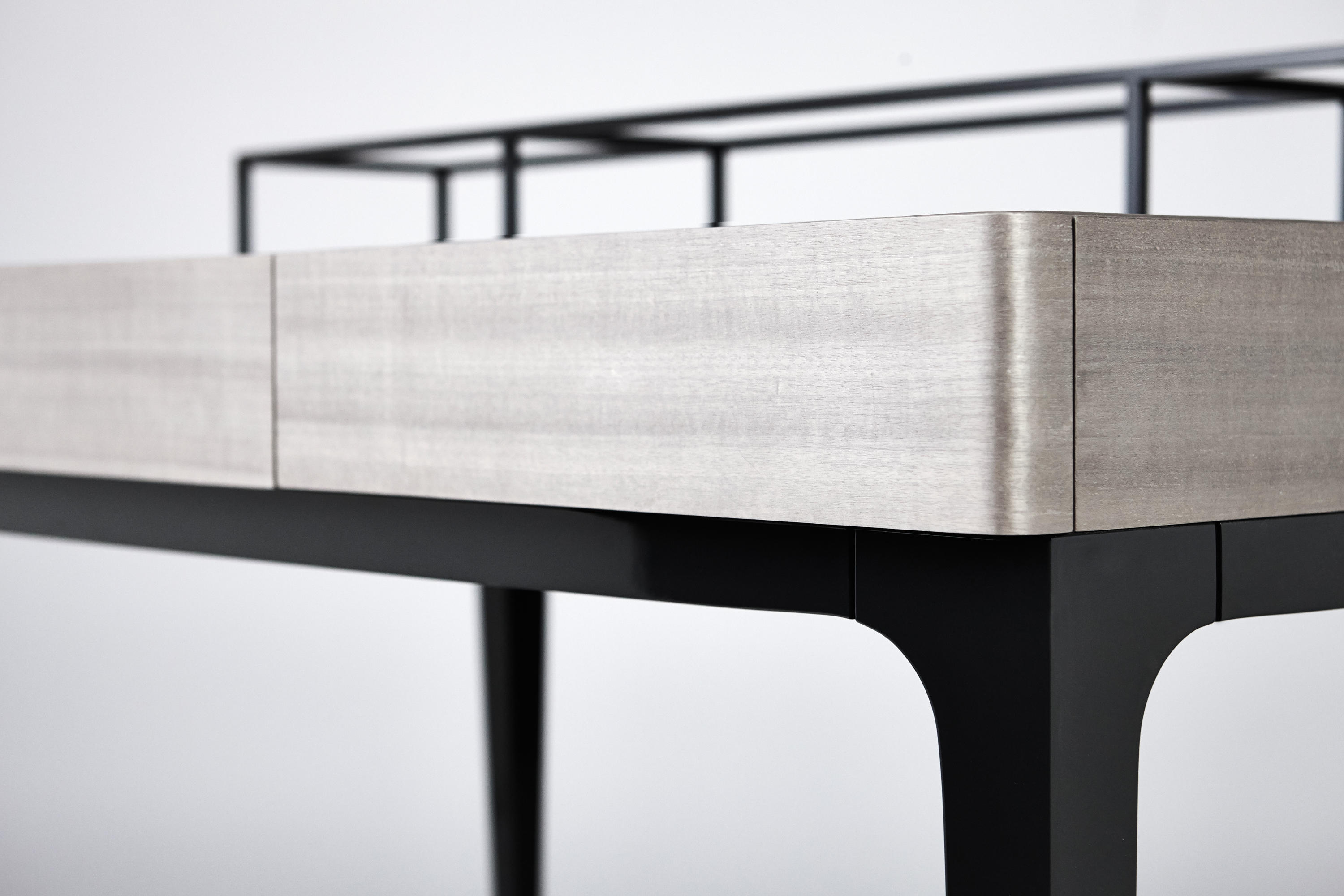 Hemingway办公桌精致而朴实无华,是任何房间的完美搭档。 采用固体漂白木材制成,呈现抛光镍细节和灰色皮革饰边尺寸。 它的圆形顶部和原始网格的细微细节增强了这种精致而永恒的家具的设计。
