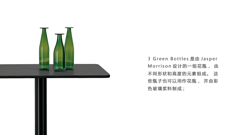 3 Green Bottles是由Jasper Morrison设计的一组花瓶,由不同形状和高度的元素组成。