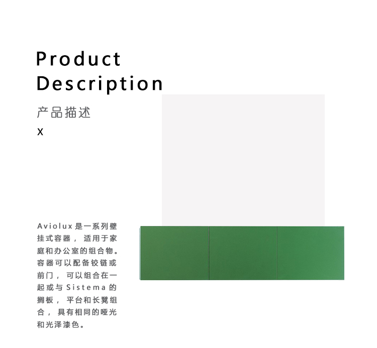 Aviolux是一系列壁挂式容器,适用于家庭和办公室的组合物。 容器可以配备铰链或前门,可以组合在一起或与Sistema的搁板,平台和长凳组合,具有相同的哑光和光泽漆色。 Aviolux的一个特点是其部件的薄度部分由高密度木质砾岩和部分面板制成,这是一种具有高机械特性的极其坚固的材料。
