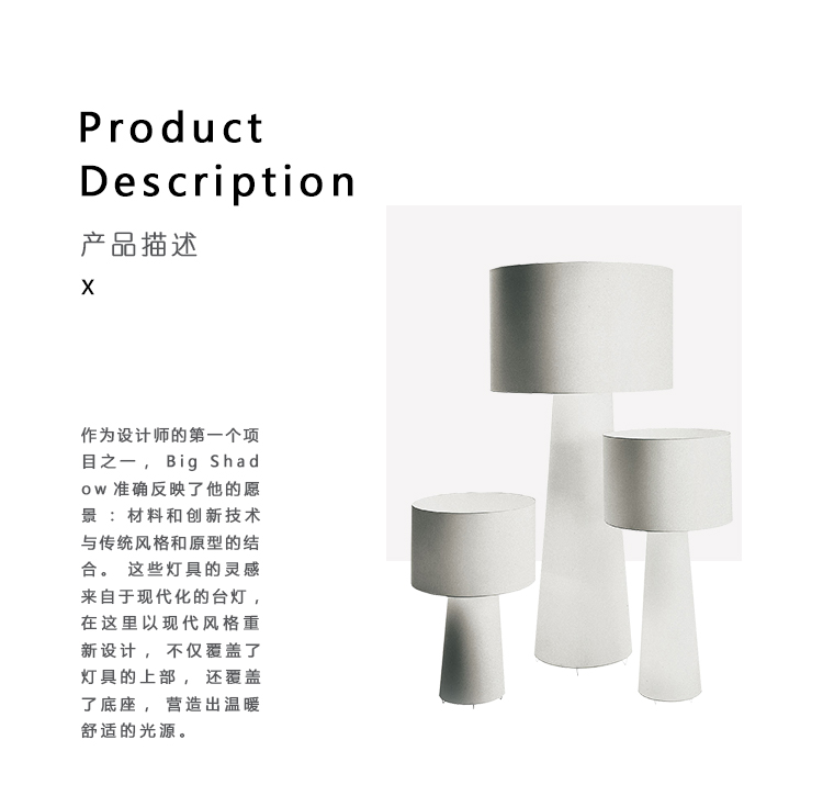 作为设计师的第一个项目之一,Big Shadow准确反映了他的愿景:材料和创新技术与传统风格和原型的结合。 这些灯具的灵感来自于现代化的台灯,在这里以现代风格重新设计,不仅覆盖了灯具的上部,还覆盖了底座,营造出温暖舒适的光源。