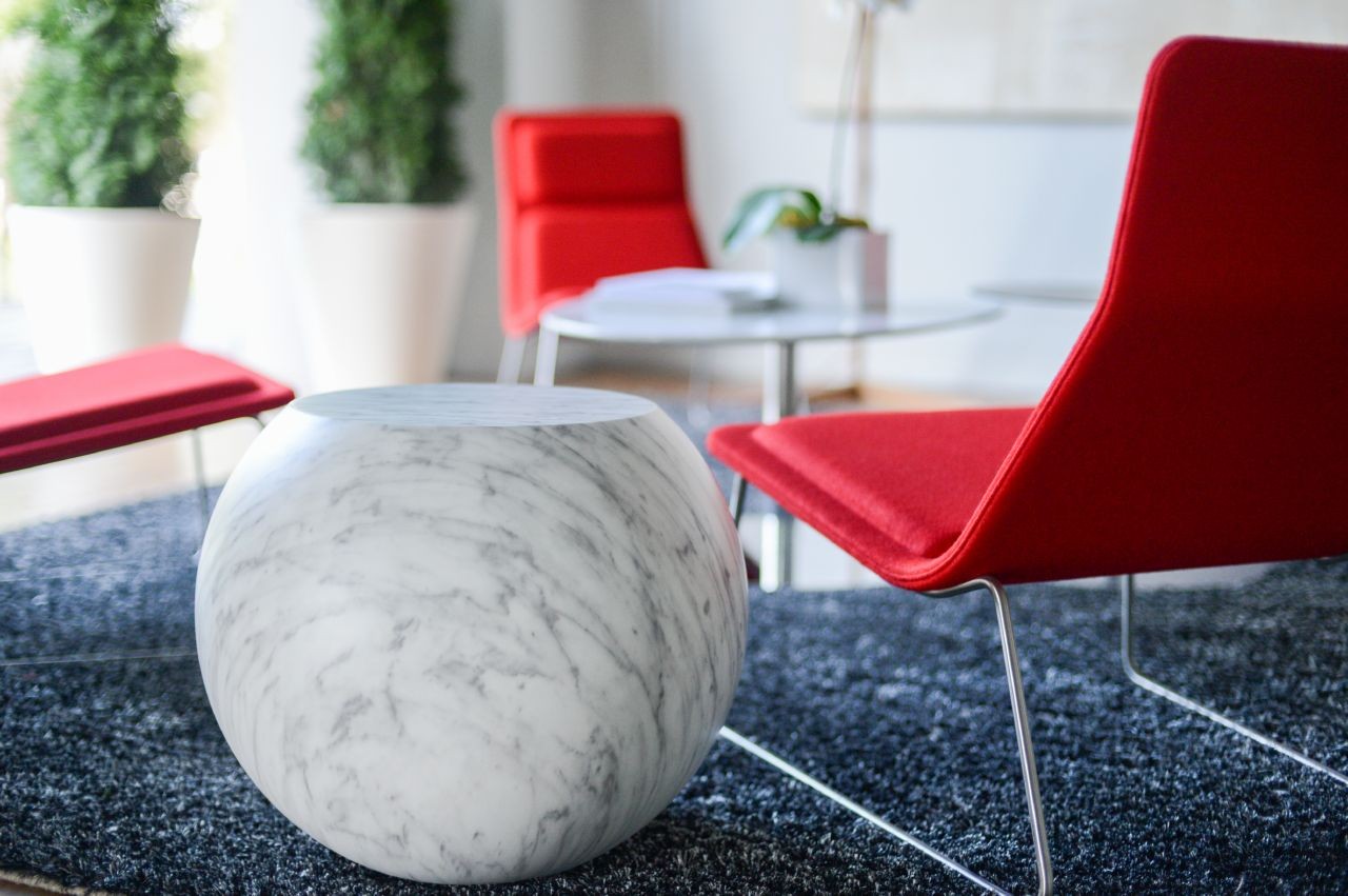 Giulio Cappellini的Bong桌子采用实心球体和圆顶设计,具有讽刺的触感和雄辩的存在感。