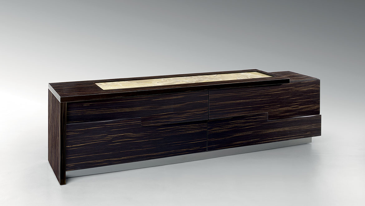 DRAWERS Version with nr.2 internal drawers (on the left side) with coordinated frontal cover. Inner drawers matt lacquered and covered in microfibre