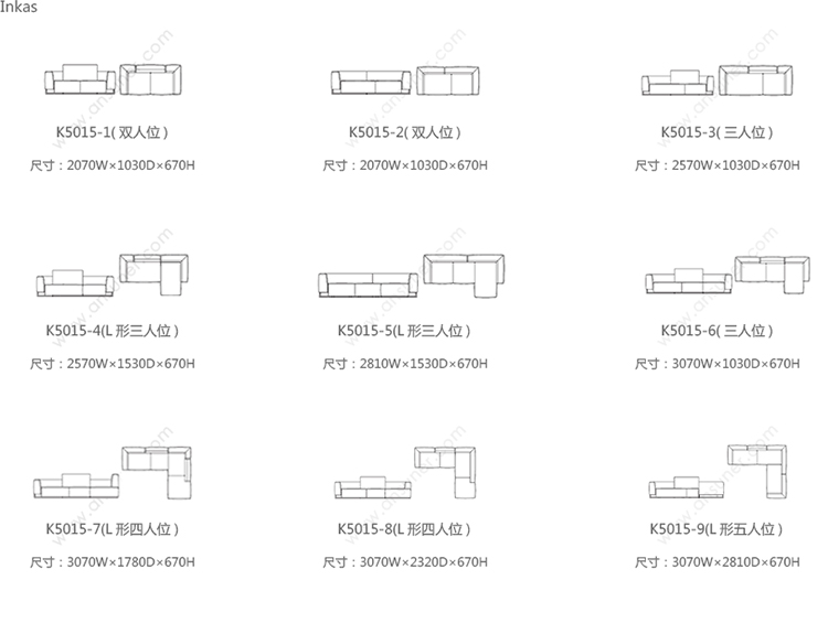 Inkas sofa 系列尺寸/示意图