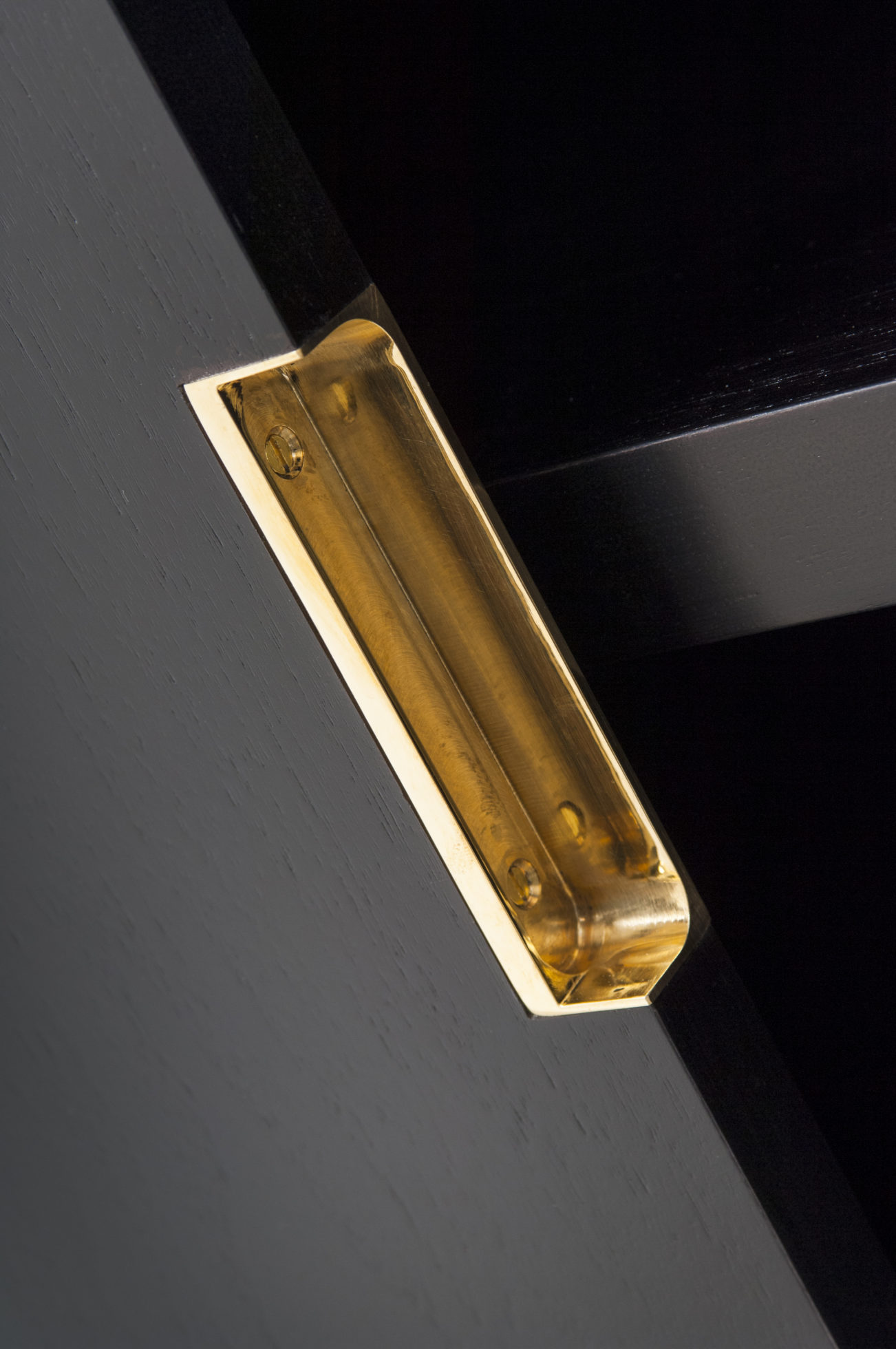 小巧但形状完美的书柜,配有真皮背板,定制手柄和抛光黄铜细节。 可订购尺寸。 这里展示的是美国黑胡桃黑檀木缎面,抛光黄铜细节和红色皮革背架。