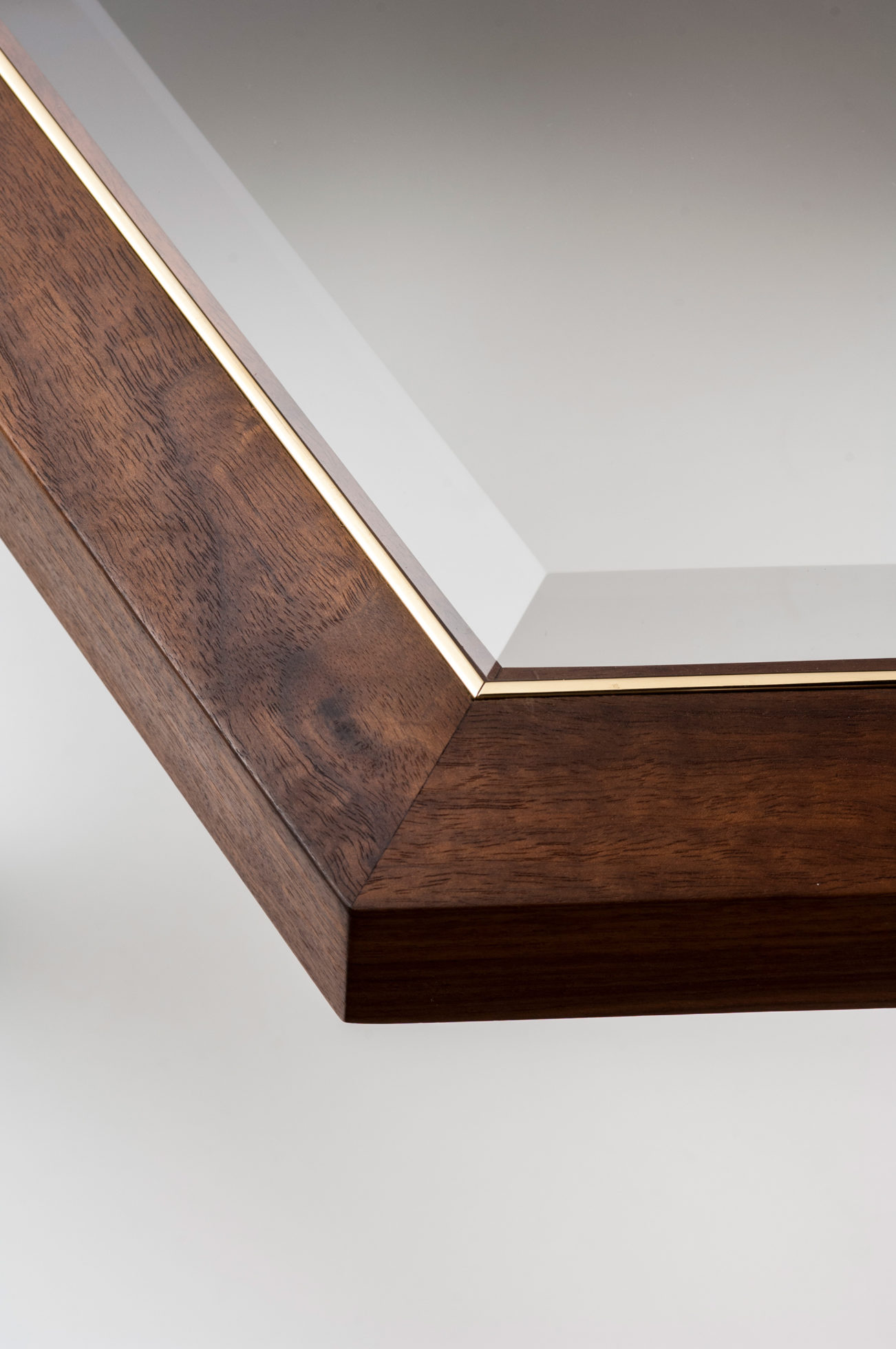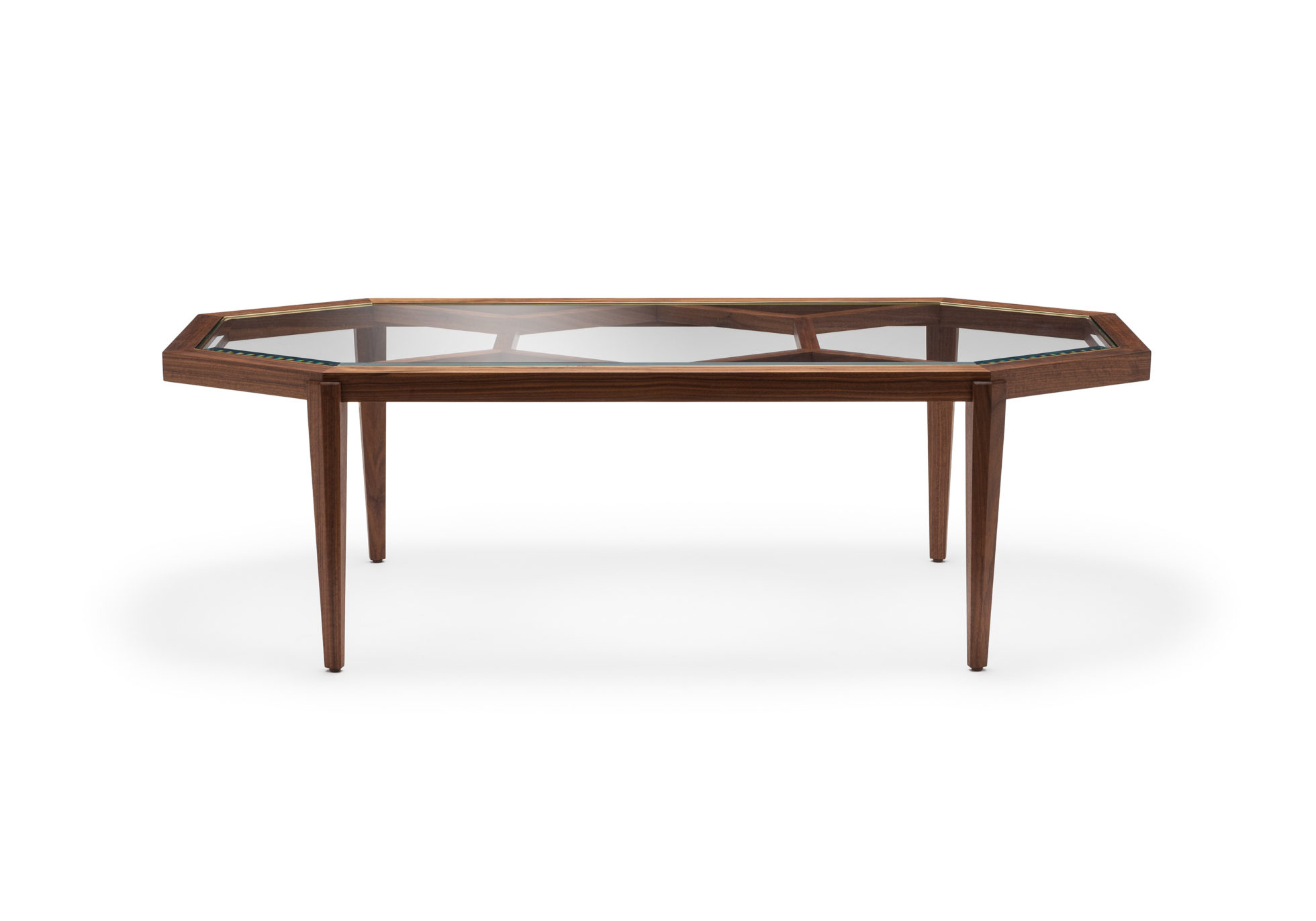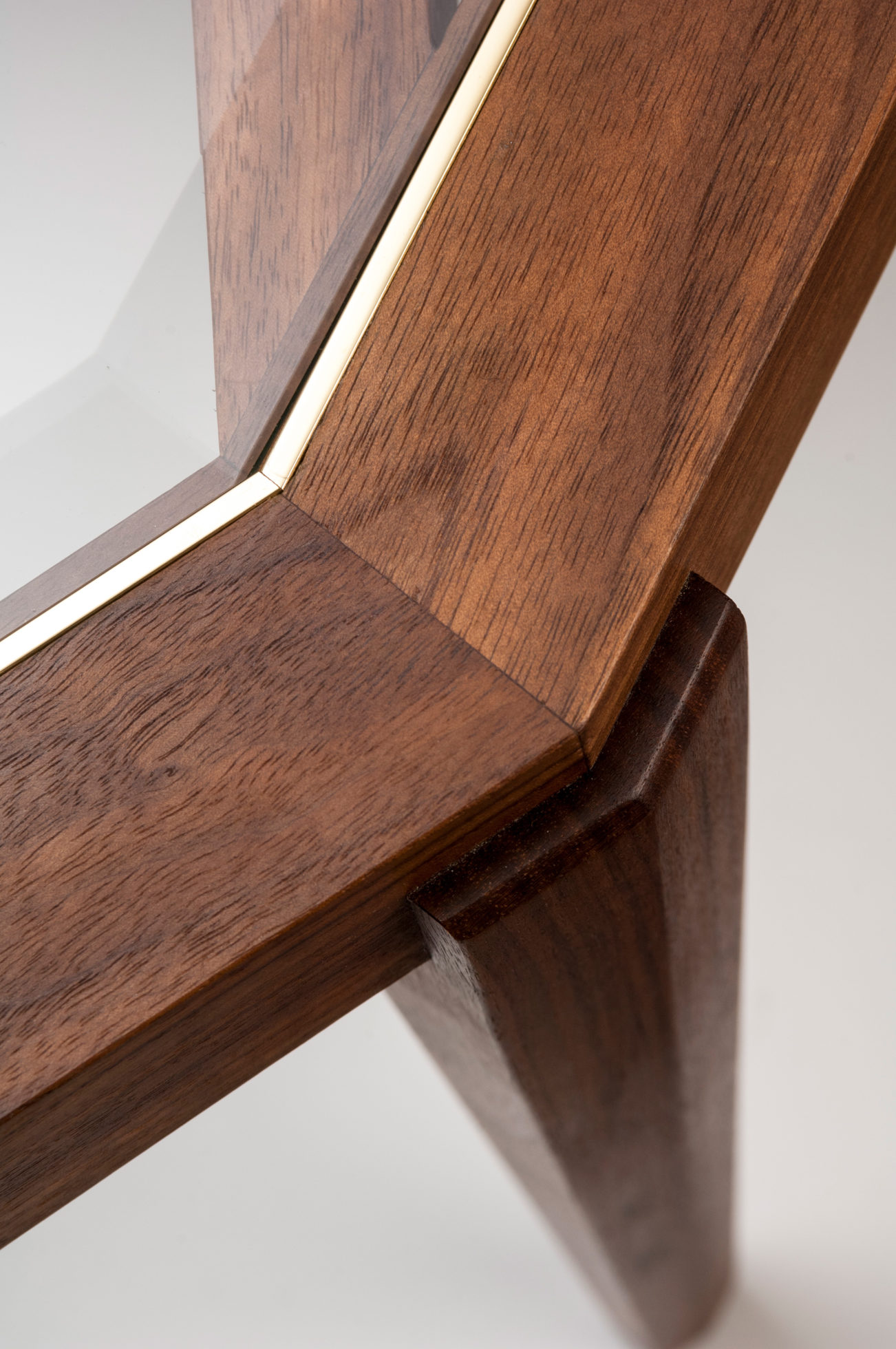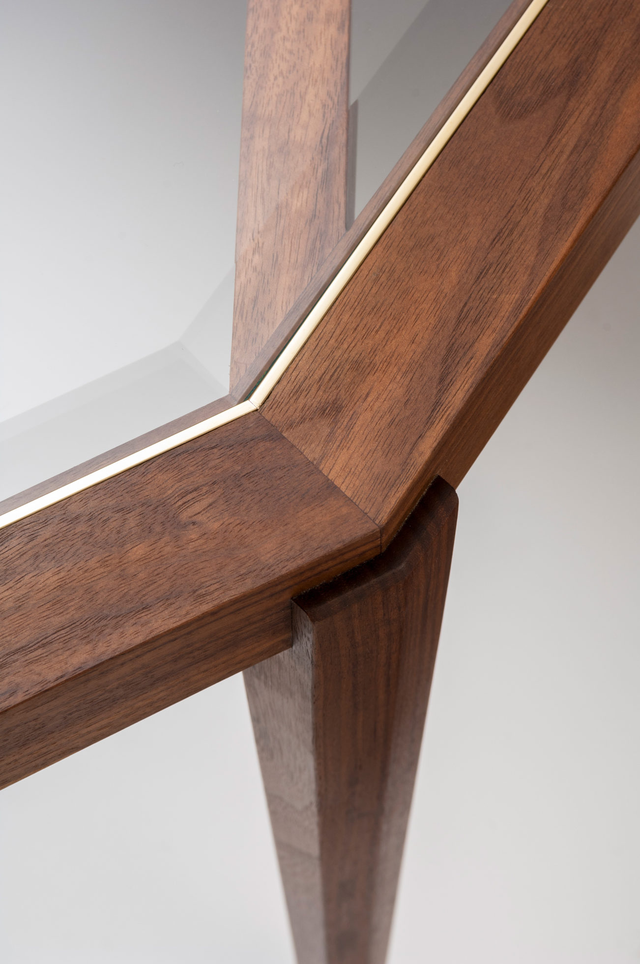 Expressing pattern beautifully, our Archebee Side Table is hand constructed of solid American black walnut and beveled glass with metal detailing. Its inherent strength and delicate form arises from where the beautiful rudiments of geometric form meet natural materials.