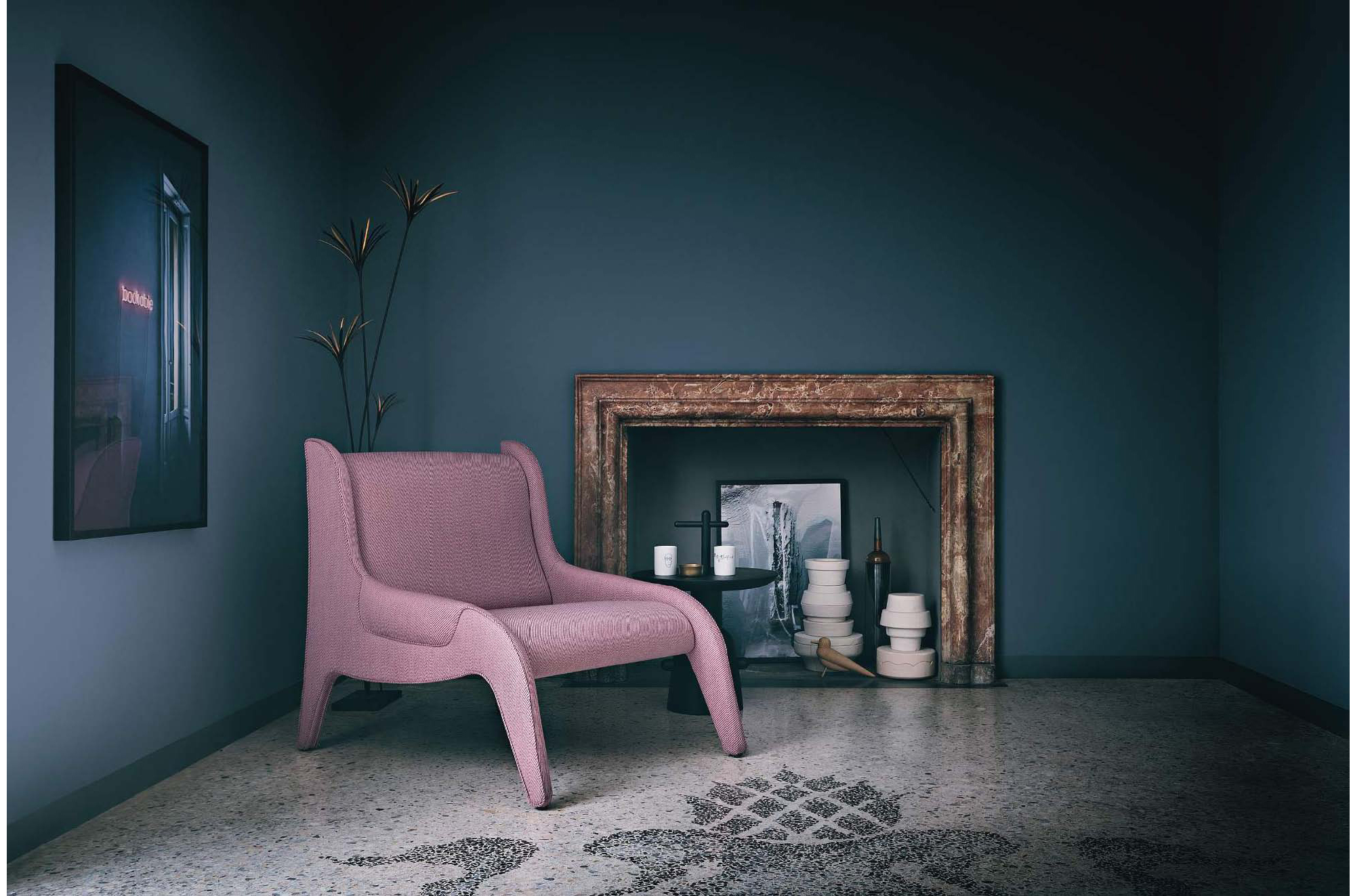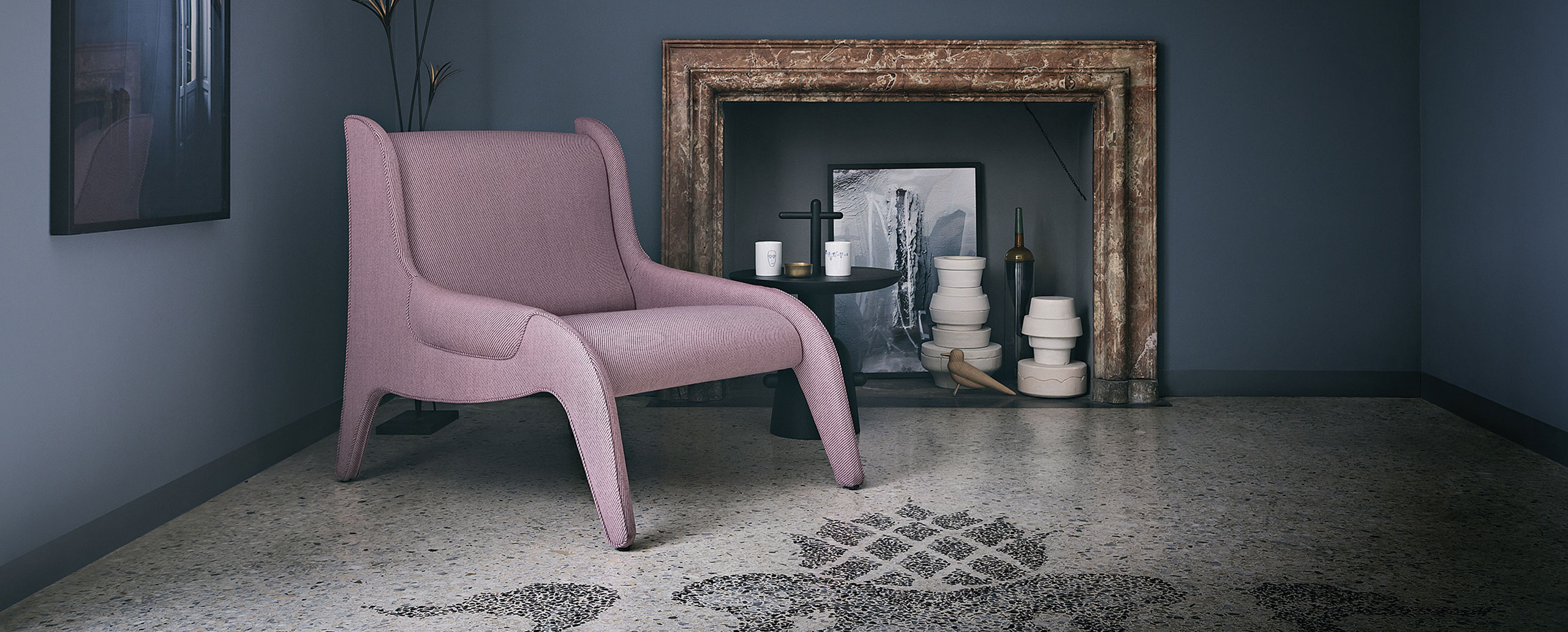 配备舒适宽座位的扶手椅。内部使用弹性绷带和钢框架。使用无CFC聚氨酯海绵和喷胶棉填充。侧板也能充当扶手。使用不可拆卸的布艺面料或皮革软包。椅脚采用黑色塑料材料制成。也有红色布艺面料软包的经典版扶手椅。桑顿·怀尔德(Thornton Wilder)的《九死一生》是在20世纪40年代末首次在米兰皮科罗剧院(Piccolo Teatro)演出的首批喜剧之一,赞努索被委任为此设计舞台布景和家具。包含使用其已经试验过的新材料并命名为Antropus的扶手椅。
