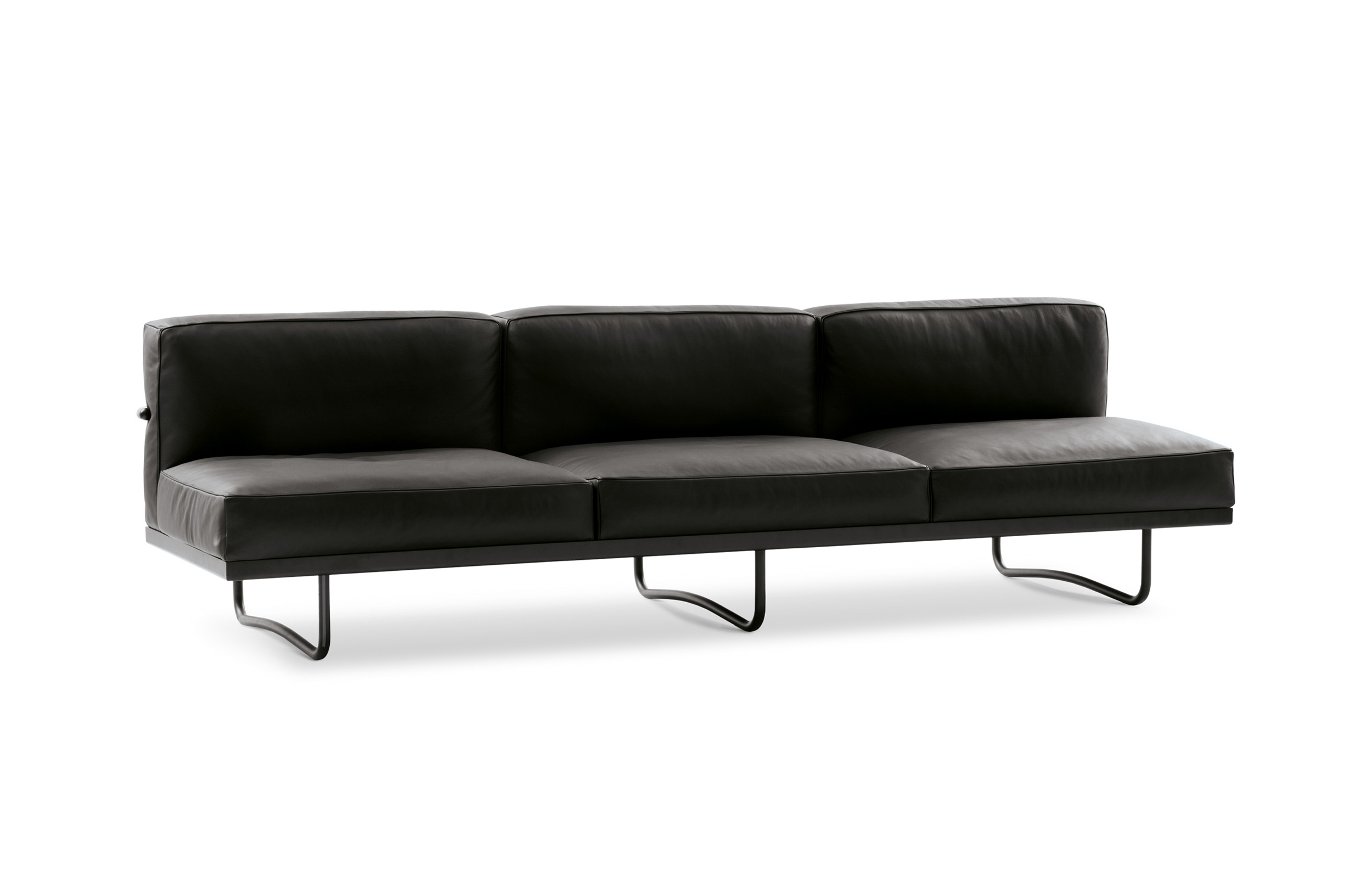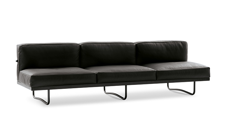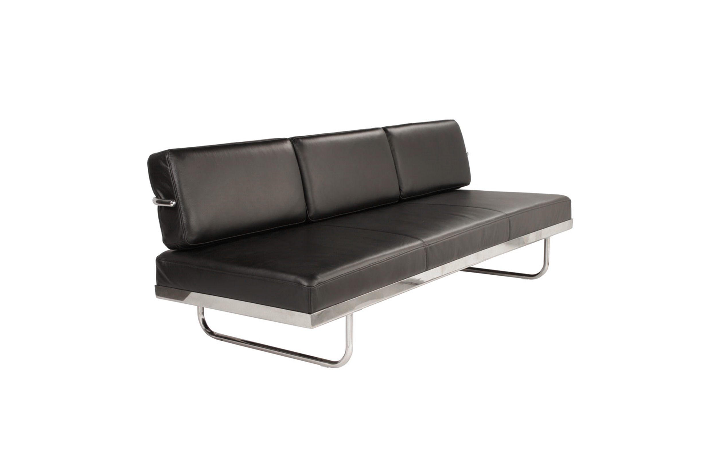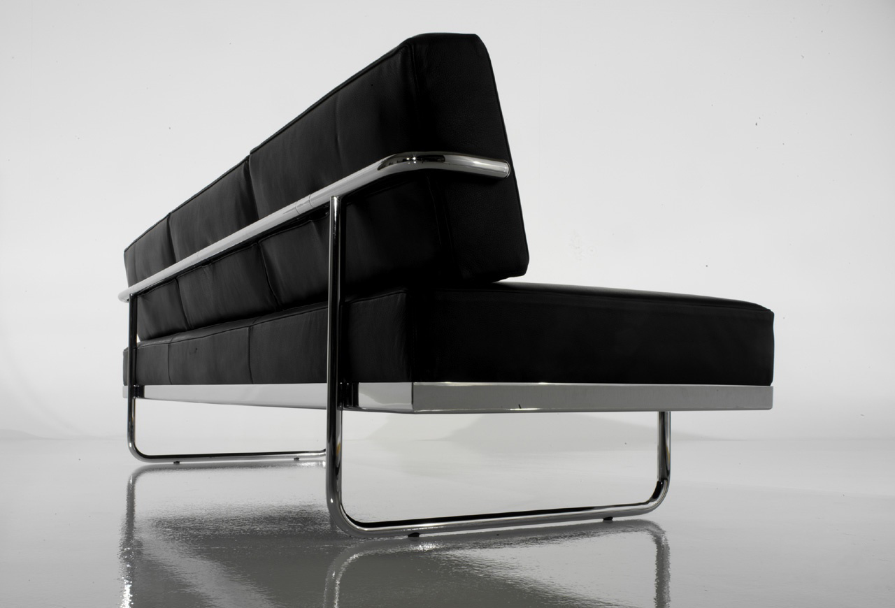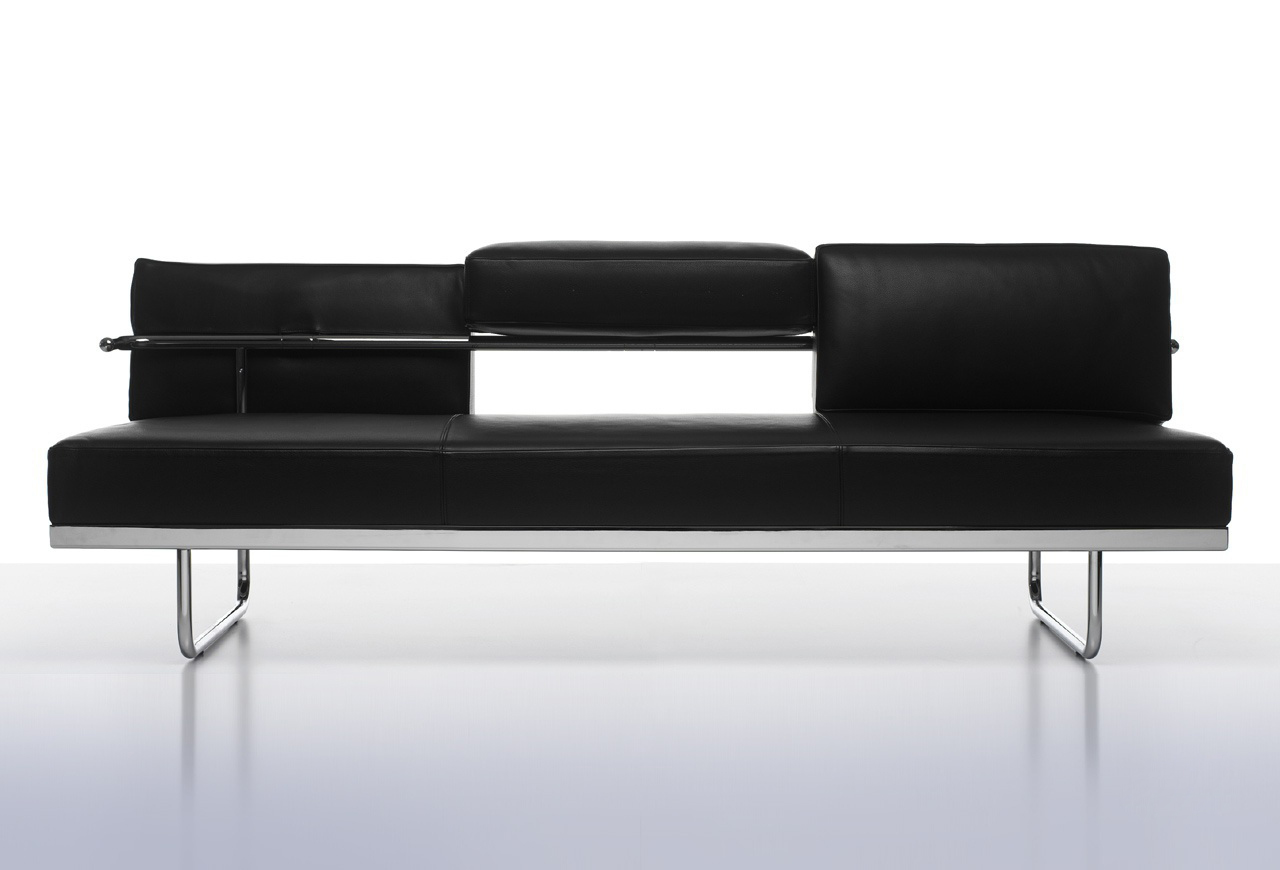 靠垫与后框架通过铰链连接,可放低,从而增加沙发座宽度,变成一张单人床。皮革或布艺面料的软包,可通过拉链全部拆下替换。原版是安置在巴黎Nungesser-et-Coli大街24号的原Le Corbusier和他妻子的公寓。