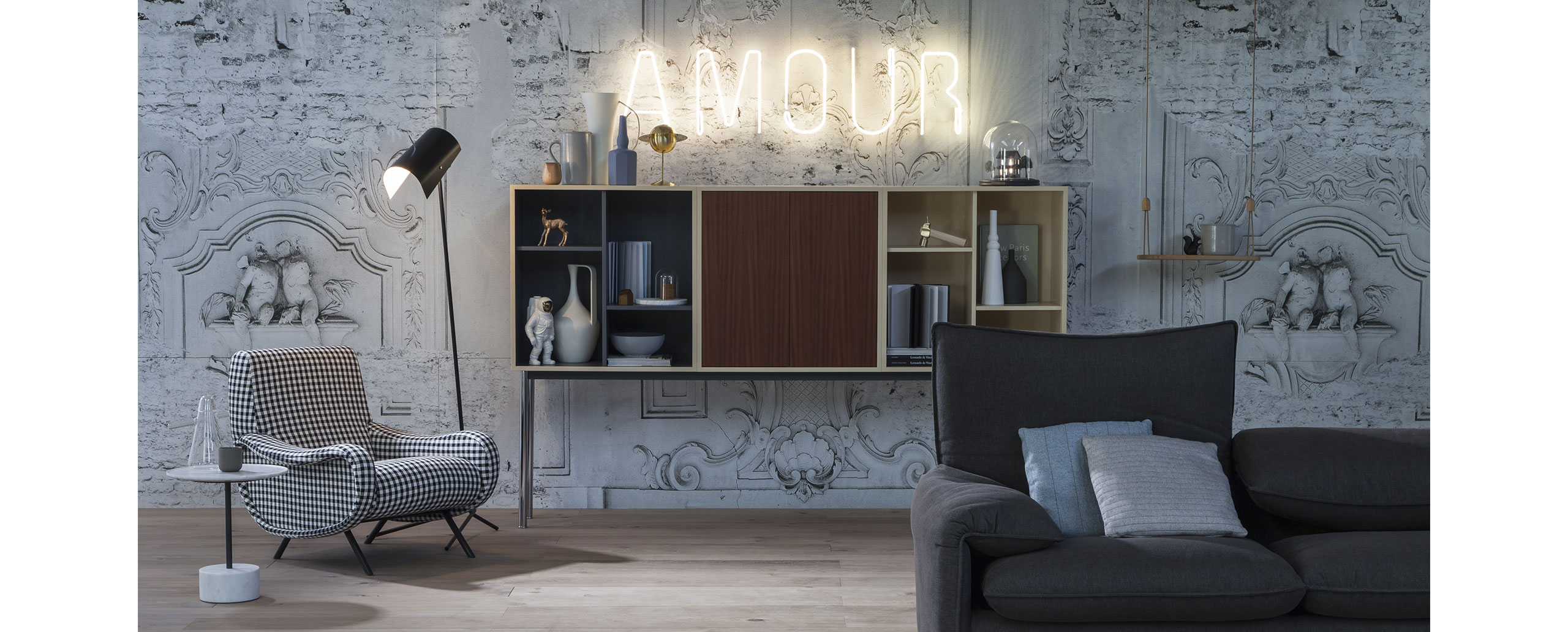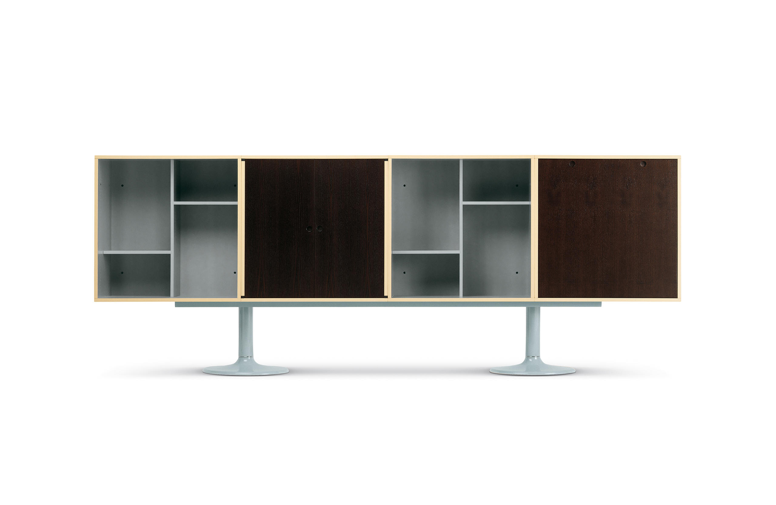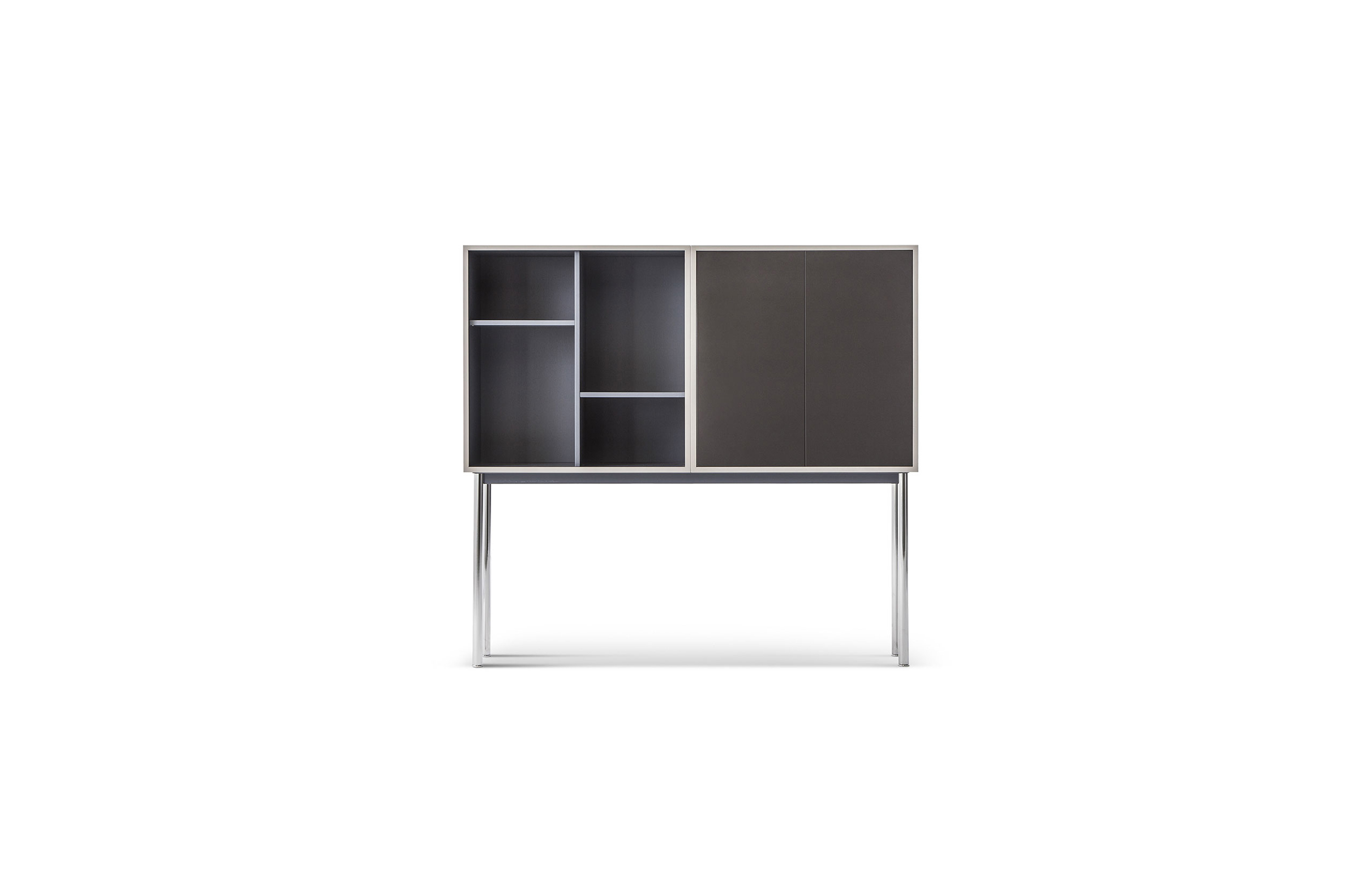 Charlotte Perriand在1984年设计的“标准柜”,由木质模块和可叠放的柜单元组成,用于满足各种要求(配备架子、抽屉等)。该款柜的基础元件是尺寸为75/75/37.5 cm的彩色中间方块。Le Corbusier和Pierre Jeanneret于1925年在巴黎“新精神展”展示了该款产品,这些柜子的设计直接源于办公室家具,除了能堆叠并连接在一起外,这款柜子还允许自由地安排空间。这款柜子由细长的底座支撑,从概念上来讲,可以比得上建筑物的容量。“标准柜”参展1929年的巴黎秋季艺术沙龙时有所改进,整体尺寸扩大,更接近真实的墙柜。