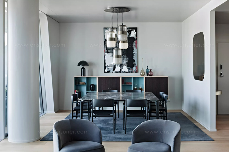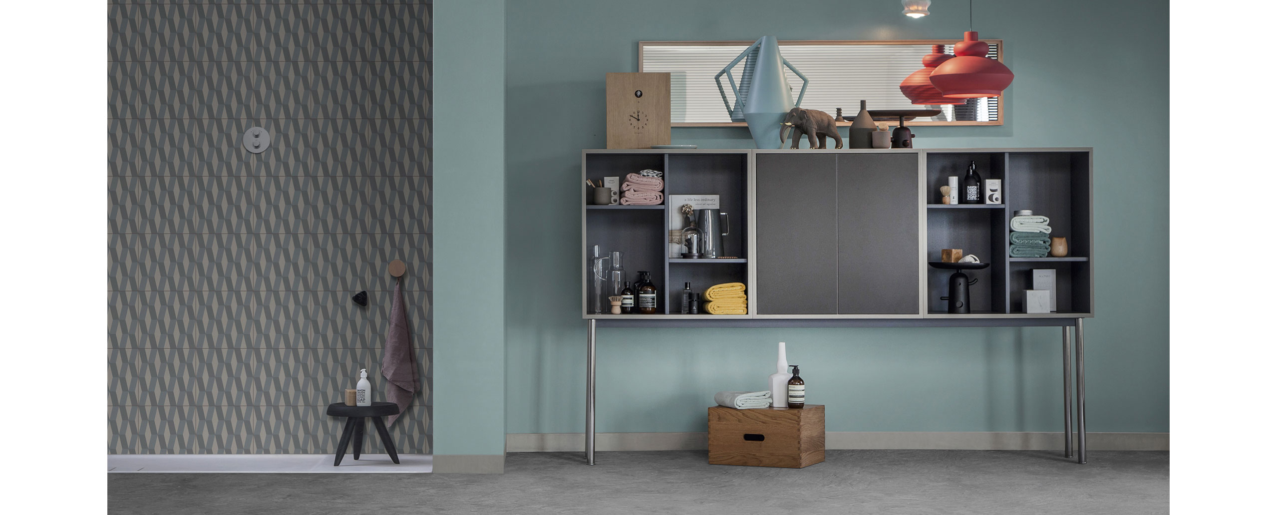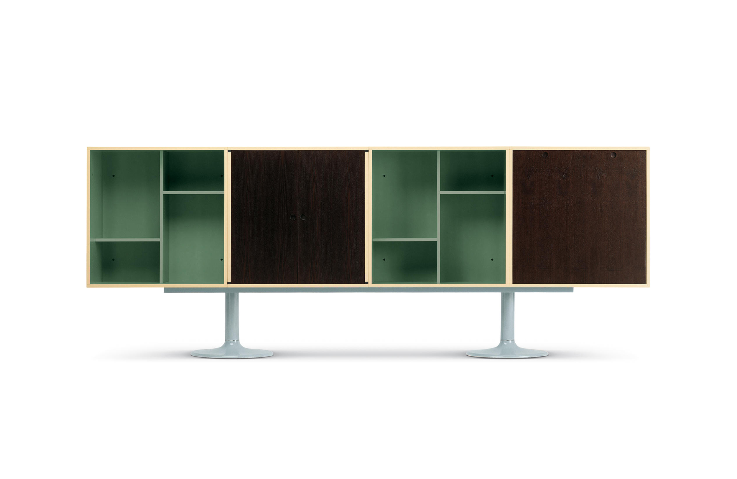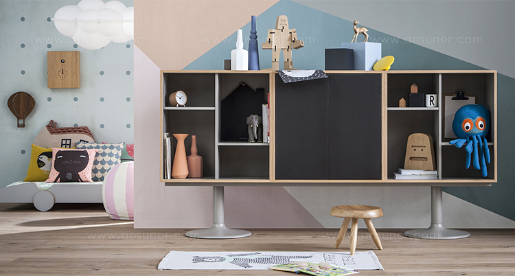 Charlotte Perriand在1984年设计的“标准柜”,由木质模块和可叠放的柜单元组成,用于满足各种要求(配备架子、抽屉等)。该款柜的基础元件是尺寸为75/75/37.5 cm的彩色中间方块。Le Corbusier和Pierre Jeanneret于1925年在巴黎“新精神展”展示了该款产品,这些柜子的设计直接源于办公室家具,除了能堆叠并连接在一起外,这款柜子还允许自由地安排空间。这款柜子由细长的底座支撑,从概念上来讲,可以比得上建筑物的容量。“标准柜”参展1929年的巴黎秋季艺术沙龙时有所改进,整体尺寸扩大,更接近真实的墙柜。