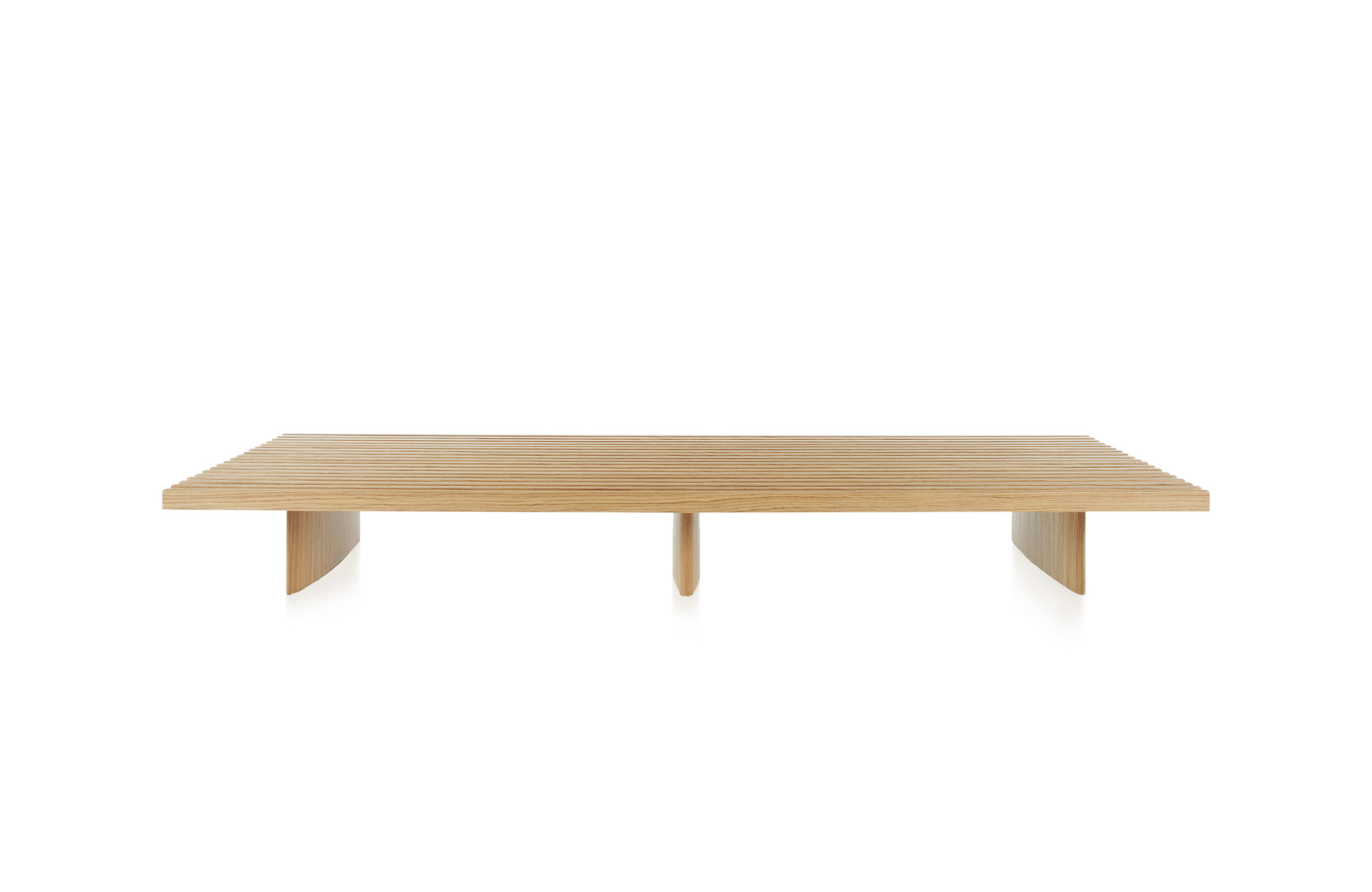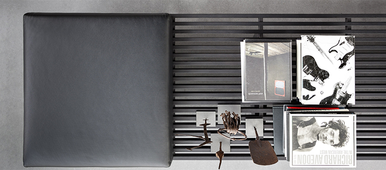 用作矮桌、长凳或和只需配备靠垫就能成为软榻的模块化系列。框架采用天然木色或黑色橡木。表面由19根板条组成;采用两条或三条支腿。软垫采用聚氨酯纤维和喷胶棉填充,用于扶手、座面,配对软垫: 一个座垫和一个靠垫。使用简单的固定装置就可将软垫固定于框架上。软垫可自由定位于表面的任何部分;因此,可使表面按照所需的尺寸用作座椅底座或顶面。