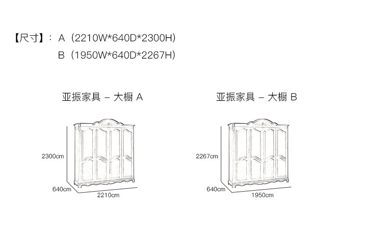 亚振家具 - 大橱/衣橱 产品尺寸/示意图