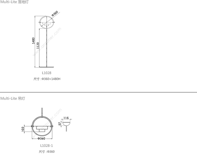 Multi-Lite 落地灯 系列尺寸/示意图