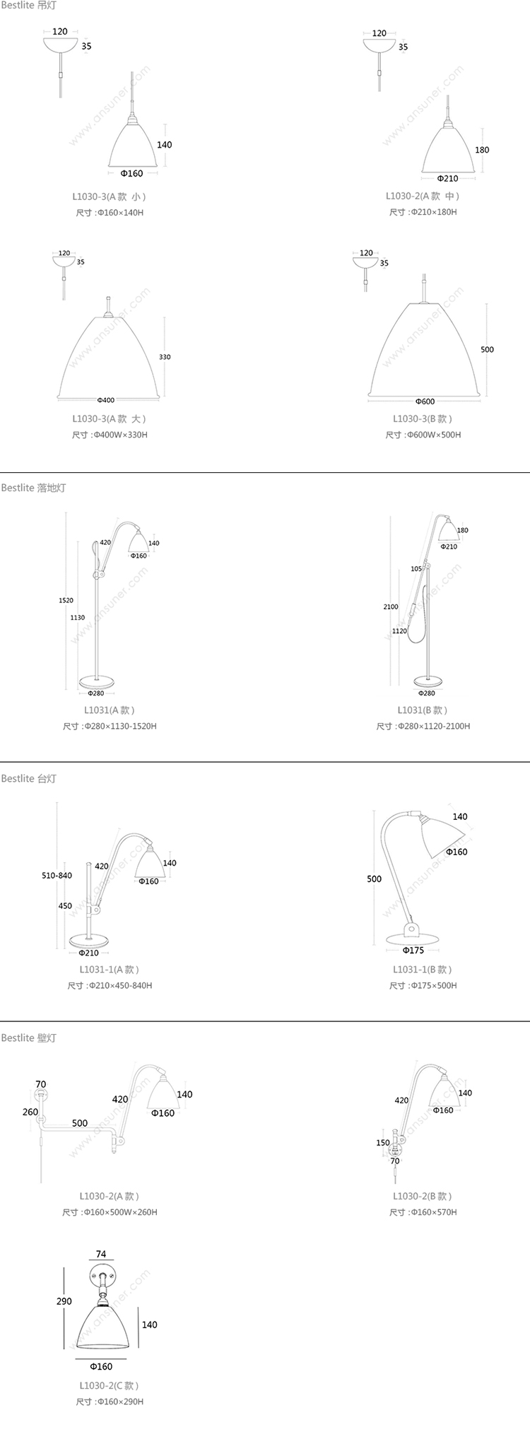 Bestlite 吊灯 系列尺寸/示意图