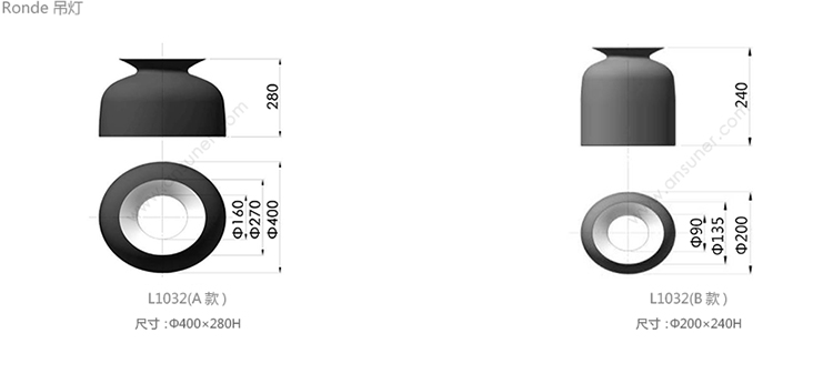 Ronde吊灯是Oliver Schick为Gubi设计的第一款产品,于2013年设计。钟形件参考了传统的吊灯和20世纪70年代闪电设计的全盛时期。 然而,在一个现代的解释。 一个独特的细节是顶部的开口,带有悬垂的衣领,让人想起花瓶或双耳瓶等罐子。 在这种设计中,光线从喷口状开口扩散开来,在电线和天花板上投射出光滑的光线梯度。
