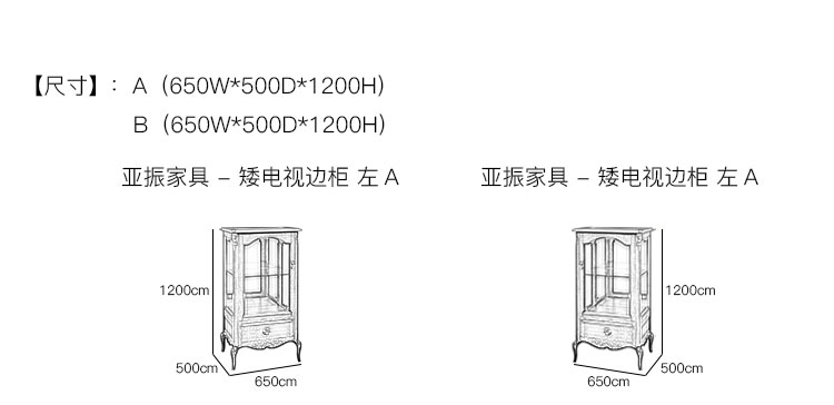 亚振家具 - 矮电视边柜 产品尺寸/示意图