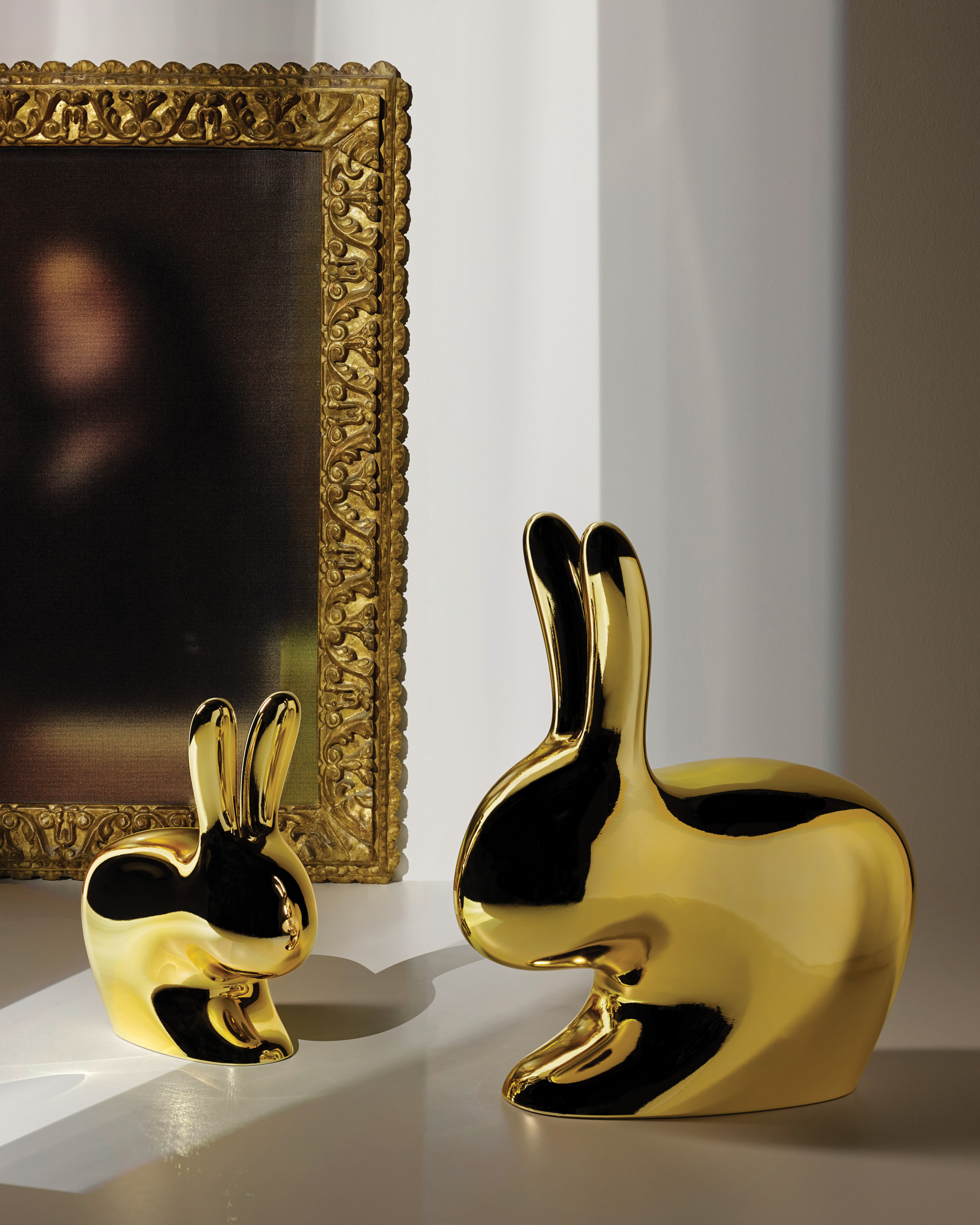 “兔椅(Rabbit Chair)”是Stefano Giovannoni魔术帽的最后一个创作,它成为具有强大的交流媒体力量的产品系列。 兔子的想法来自它的轮廓和椅子的轮廓之间的联系,兔子的耳朵成为椅子的靠背。 它有一个双重变化,适合成人和儿童,还有第三个版本,照明,可以是一盏灯。 年轻人和老年人可以坐下来靠在兔子的耳朵上,或者在对面,骑着它并将手臂靠在耳朵上。 兔子是一种温柔的动物,可爱而温柔。 在西方和东方文化中,它象征着爱和生育,它是一个甜蜜和吉祥的对象,带来了好运和美好的愿望。