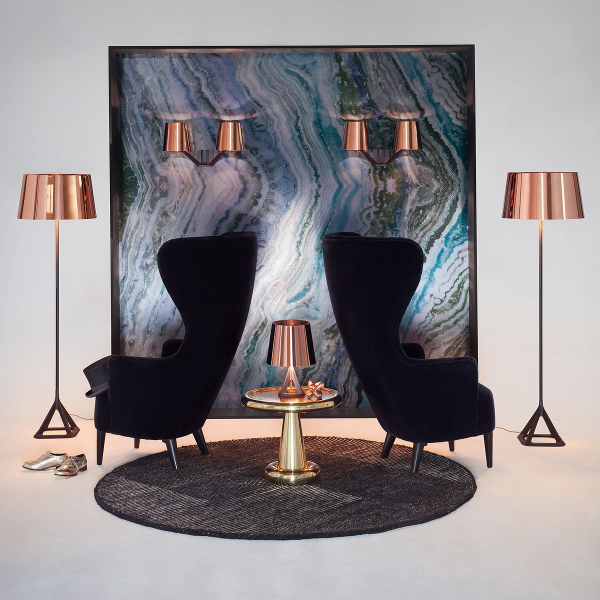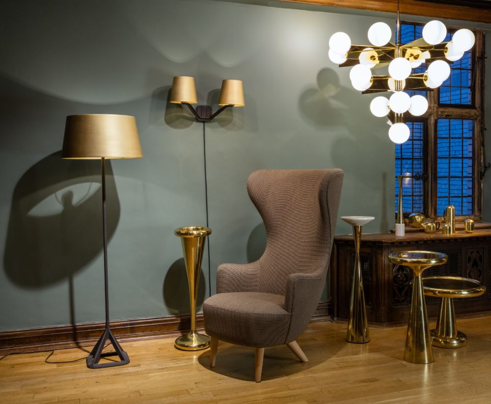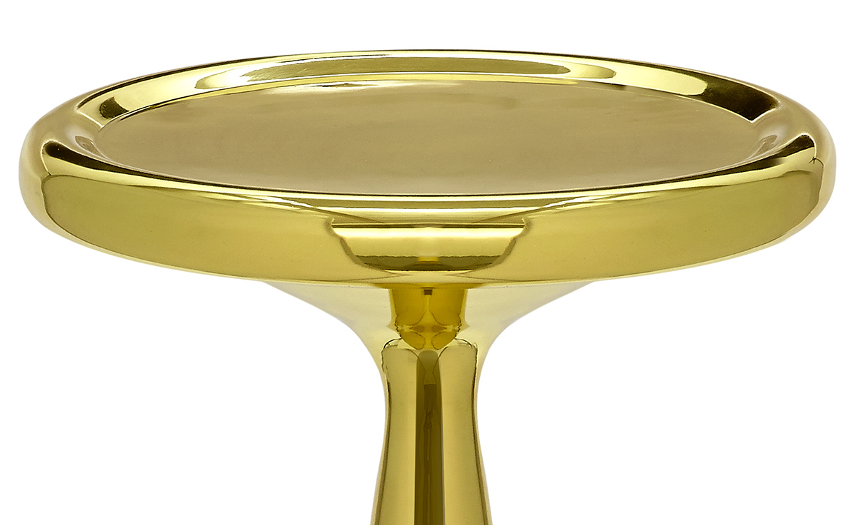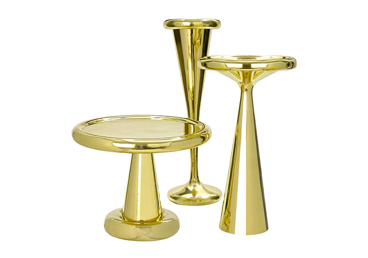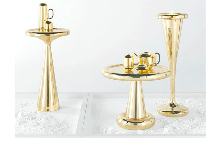 由Tom Dixon Space age, Art Deco or Pop设计的2013 Spun-sheet solid brass bronze——这三件极具表现力、偶尔会出现的家具,每个人都看到了不同的影响。她说:“这是一件非常漂亮的作品。它的比例非常大,用手工抛光的纯黄铜薄板做成的曲线状,使鸡尾酒吧、餐厅或客厅立刻焕发出迪斯科的魅力。”