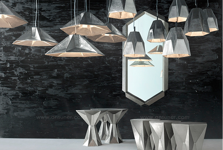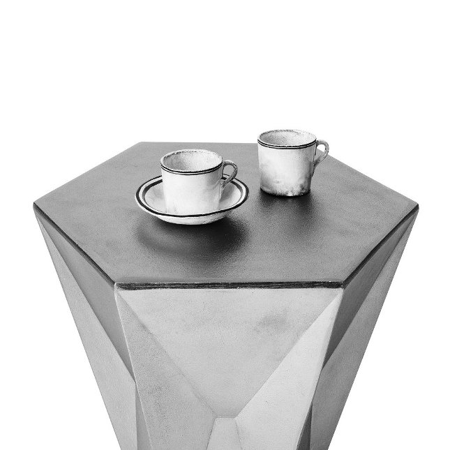 Gem系列以半宝石和银锭的形状为基础.Gem Table Low是一种由镀镍铝制成的坚固块状物,由半宝石和银锭组成.Bearing 六角形桌面在其身体上有角度压痕,强化了它的宝石名称。