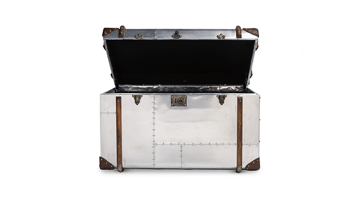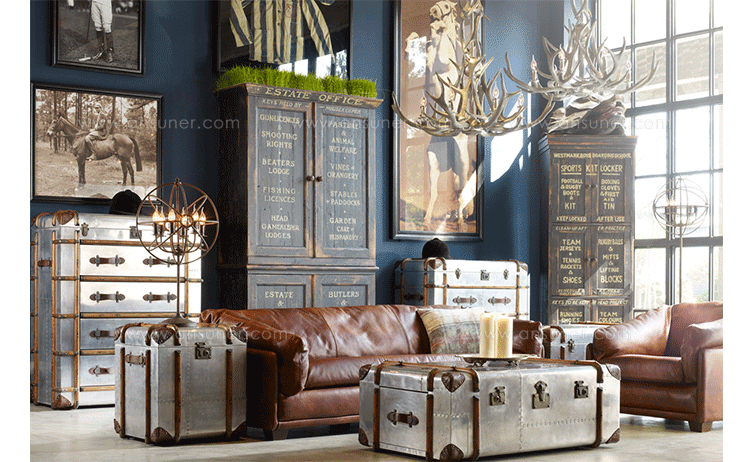 "慵懒、我行我素、精致、时尚,还有那么点怀旧的味道,Timothy Oulton家居的产品就是用这些无可替代的特点,征服了各国的英伦家具爱好者们。重提浪漫时代的长长的豪华海上航行,Globetrekker 系列的灵感来自Timothy Oulton于1914年在一个古董市场发现旅行箱,他深深的被复杂细节和美丽的黄铜板的旅行箱迷住了,Oulton拆解了那个古色古香的旅行箱并进行重新设计出一系列作品,它涵盖的灯表、 箱子、 咖啡桌和书柜等集合。捕获真正的魅力,还原精致工艺的旧古董皮箱的精髓,通过怀旧的贴纸饰面样式,采用老木、优质的老式皮革和黄铜铰链,通过精湛的手工处理完成了这套系列。