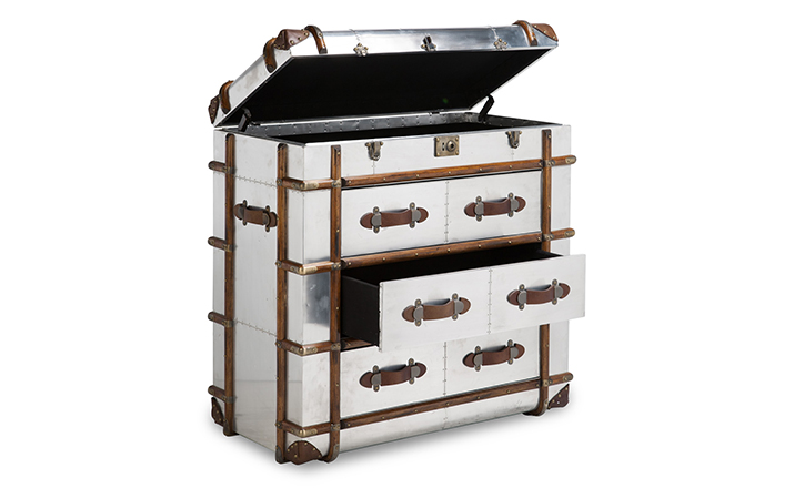 "慵懒、我行我素、精致、时尚,还有那么点怀旧的味道,Timothy Oulton家居的产品就是用这些无可替代的特点,征服了各国的英伦家具爱好者们。重提浪漫时代的长长的豪华海上航行,Globetrekker 系列的灵感来自Timothy Oulton于1914年在一个古董市场发现旅行箱,他深深的被复杂细节和美丽的黄铜板的旅行箱迷住了,Oulton拆解了那个古色古香的旅行箱并进行重新设计出一系列作品,它涵盖的灯表、 箱子、 咖啡桌和书柜等集合。捕获真正的魅力,还原精致工艺的旧古董皮箱的精髓,通过怀旧的贴纸饰面样式,采用老木、优质的老式皮革和黄铜铰链,通过精湛的手工处理完成了这套系列。