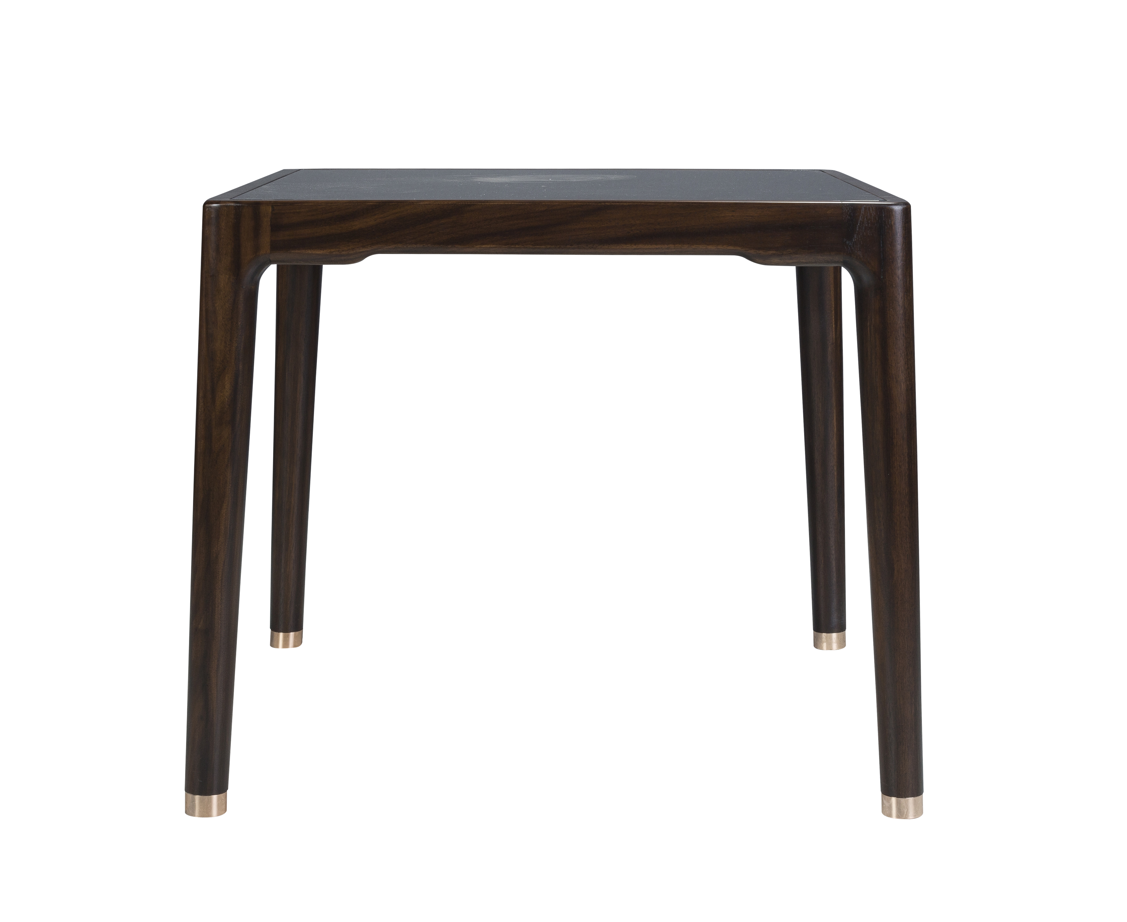 1.造型简洁精巧,以线为主,搭配茶色玻璃桌面,融入传统中式罗锅枨元素,通透灵动。 2.腿部内收,上收下分,具有很好的视觉稳定感,稳重大方。 3.铜脚设计,赋予中式韵味的同时以防磨损。