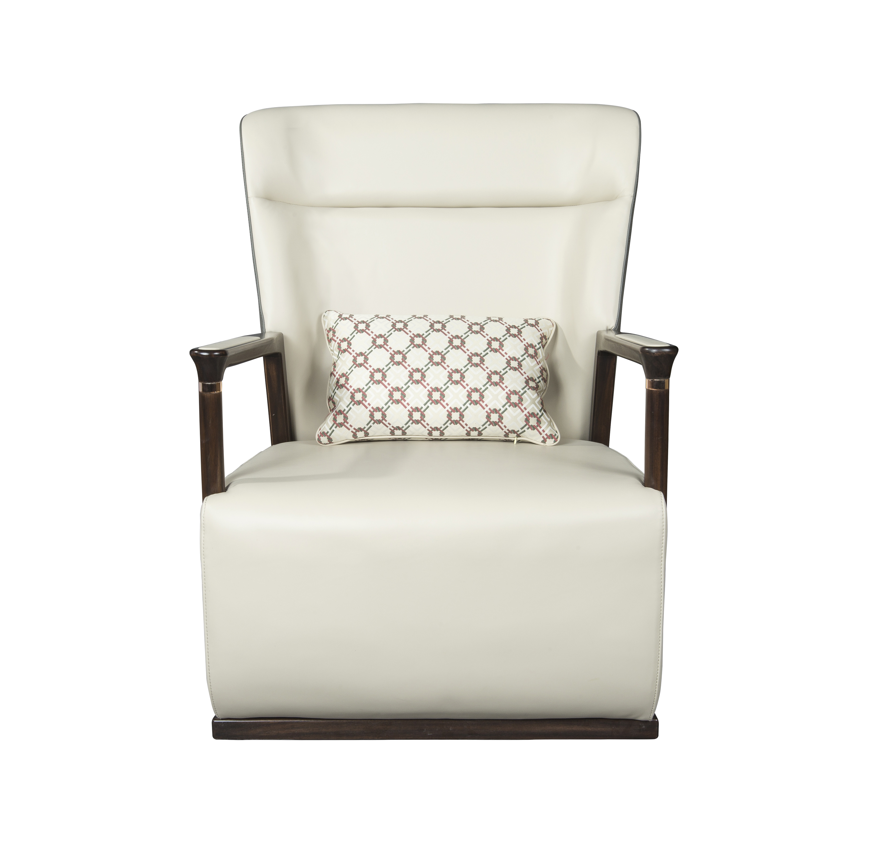 1.靠背宽大,两侧带翼,似怀抱状,温馨舒适。 2.进口牛皮手工包饰同时靠背曲线贴合人体工学,坐感舒适,美观耐用。 3.扶手前端装饰铜饰件,点睛之笔,细节精致,彰显价值。