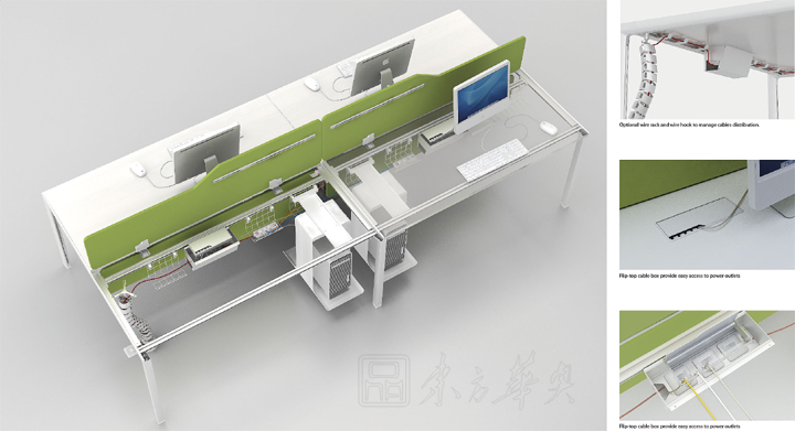 ※  屏风和挡板可随意制作,随意拆装,上下面板、走线盒均可随意快速滑动、调换。 加工更简单,组装速度更快。直角方式连接,无螺丝孔,外观更美观。