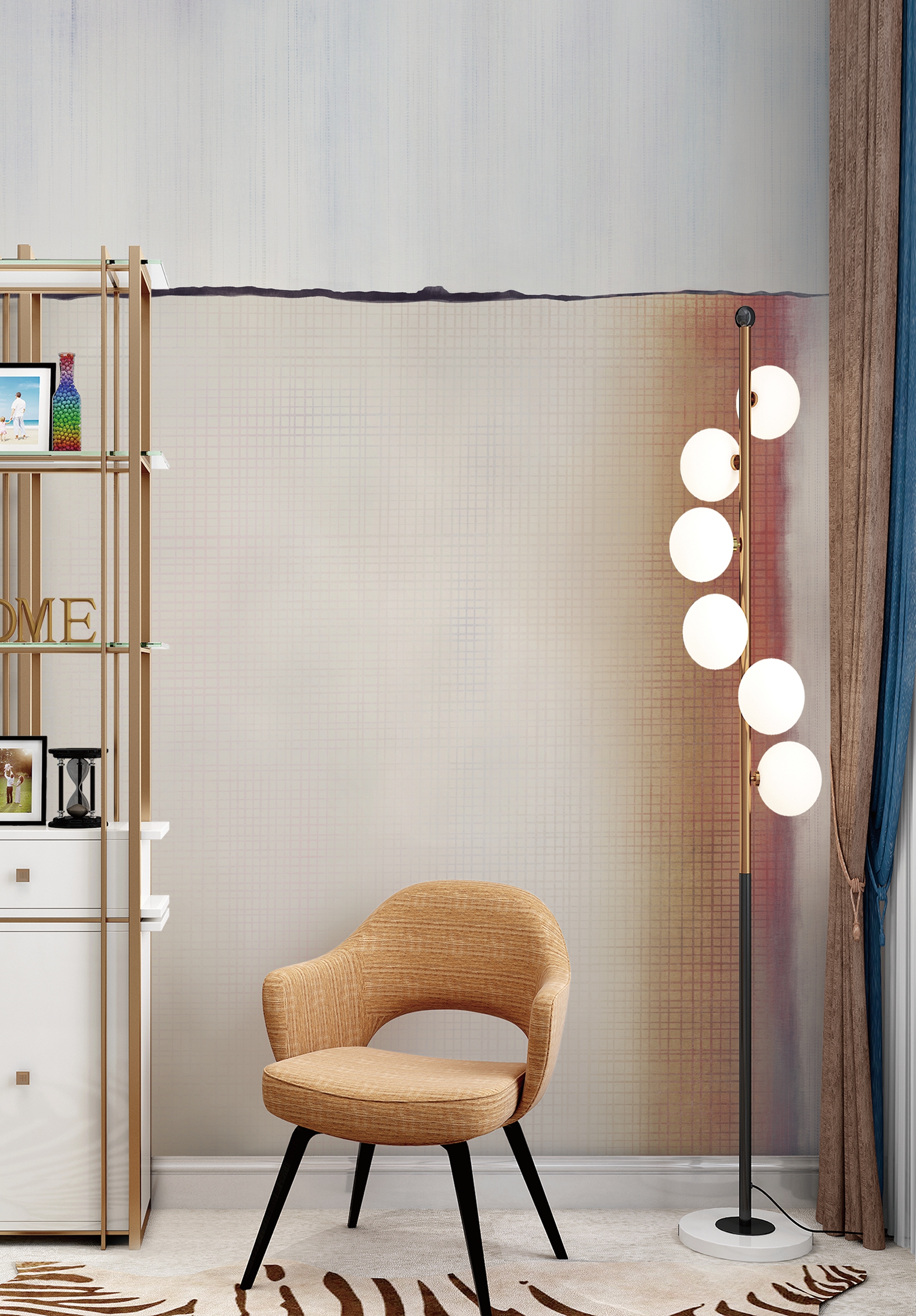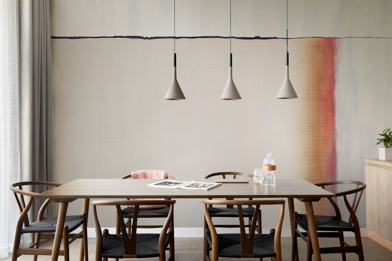 空间几何系列以点线面的构成作为创作主题,利用不同的构成方式,创造多样化的视觉效果,我们放弃了具体的内容和情节,突出运用这些纯粹的绘画语言来表现艺术形式的纯粹美;点、线、面和构成手法,就像是大厦的基石一样,看起来毫不起眼,但力量却无比强大,它是我们不断探索的源泉和情感表达的桥梁