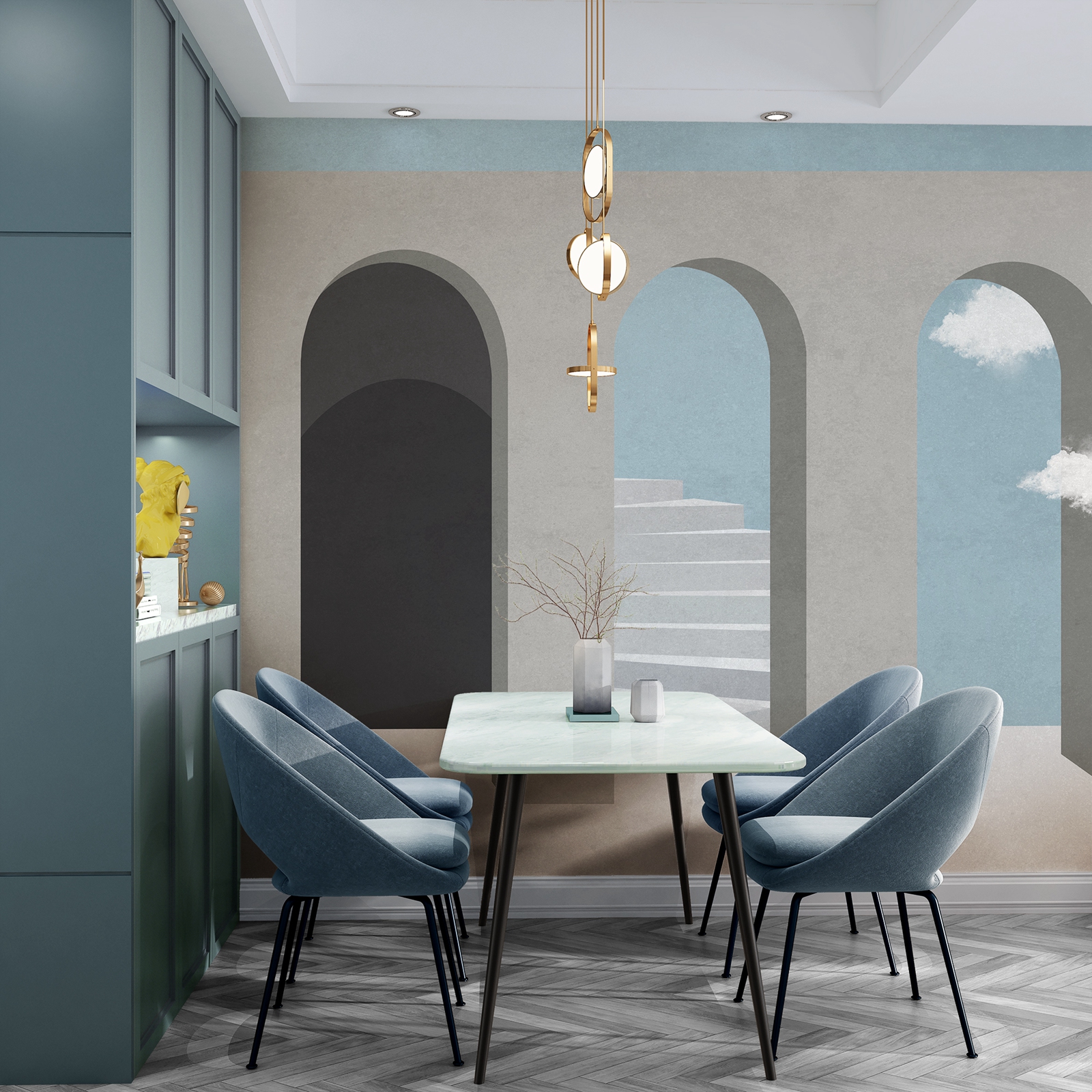 空间几何系列以点线面的构成作为创作主题,利用不同的构成方式,创造多样化的视觉效果,我们放弃了具体的内容和情节,突出运用这些纯粹的绘画语言来表现艺术形式的纯粹美;点、线、面和构成手法,就像是大厦的基石一样,看起来毫不起眼,但力量却无比强大,它是我们不断探索的源泉和情感表达的桥梁