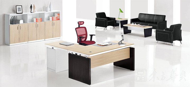 ※  系列配套主管位的主台和副台连体结构展示,增大办公台空间区域。