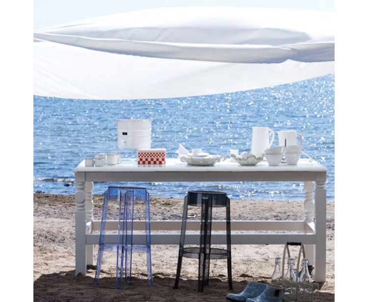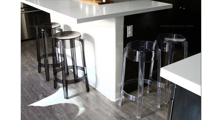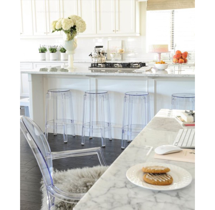 "Charles Ghost Stool(查尔斯鬼凳),由鼎鼎大名Philippe starck(菲利浦·史塔克)设计;进口高透明度工程塑料PC一体成型,简洁新潮,高净度透明材质很好的表现出产品的时尚和百搭,可以毫不夸张的说,几乎配任何装修风格他都很灵,而且显品味,空间感也很好,如果你的吧台空间不大的话,放这款吧椅视觉很通透,不占地方。"