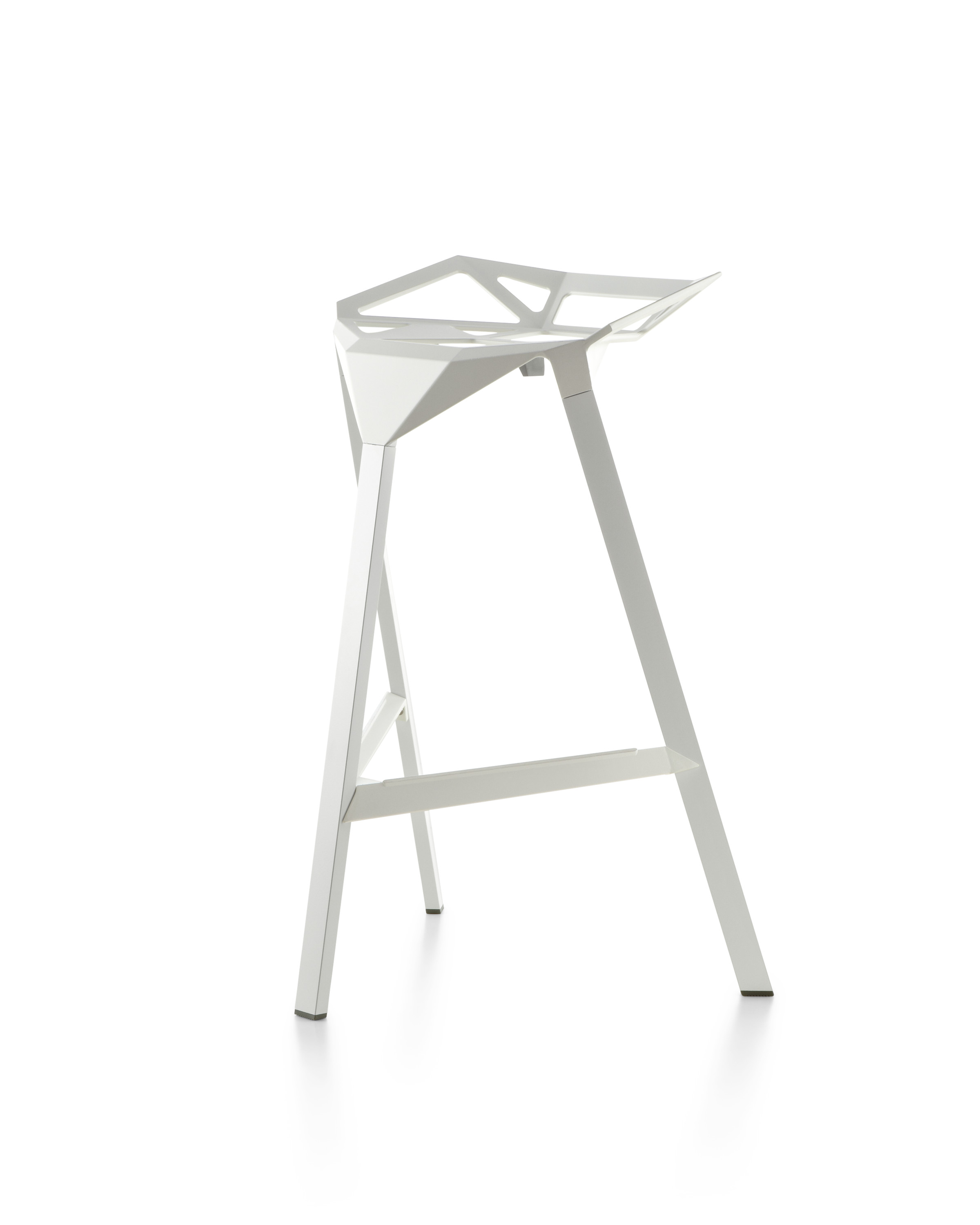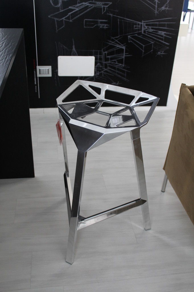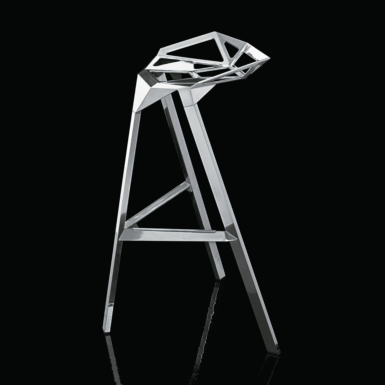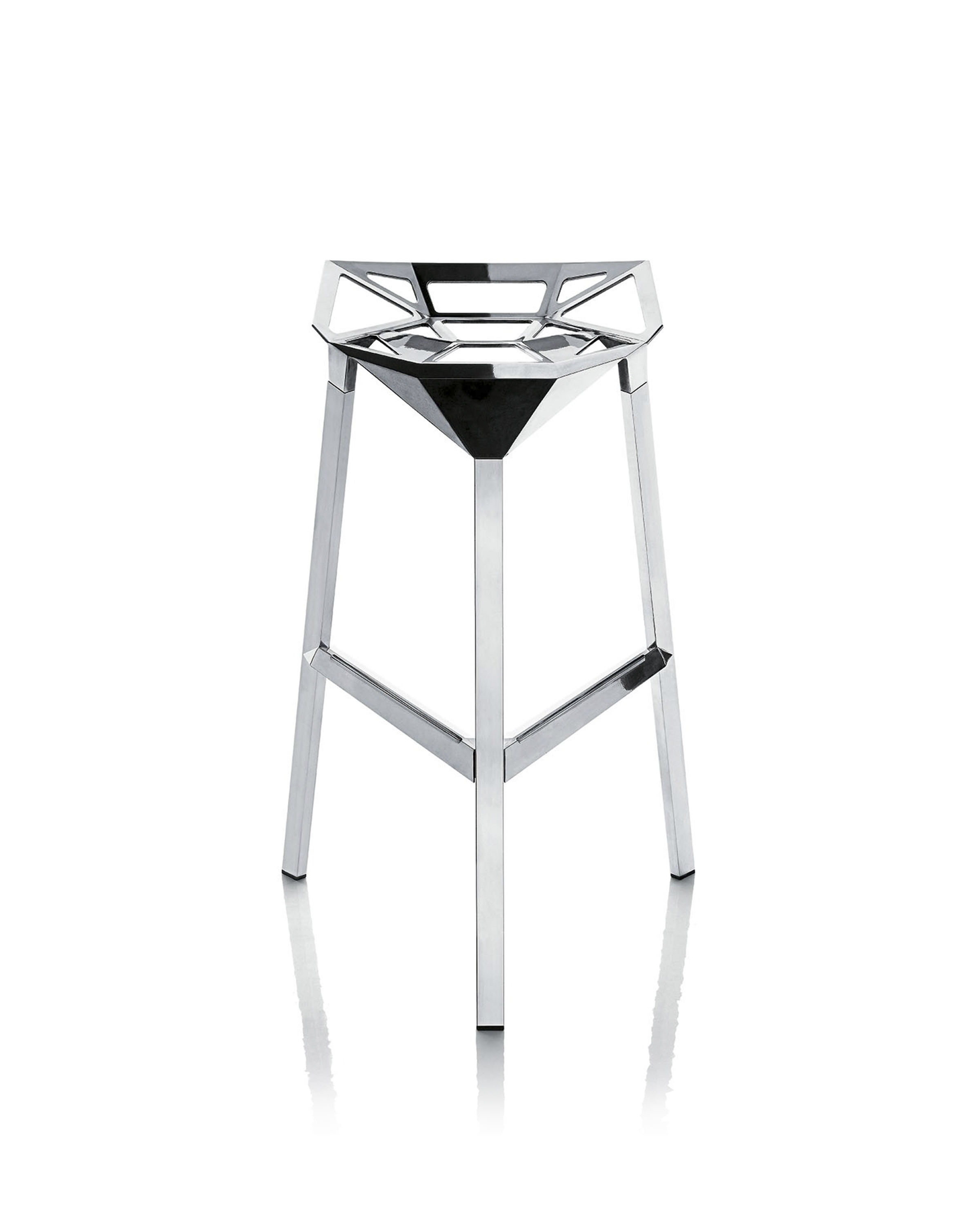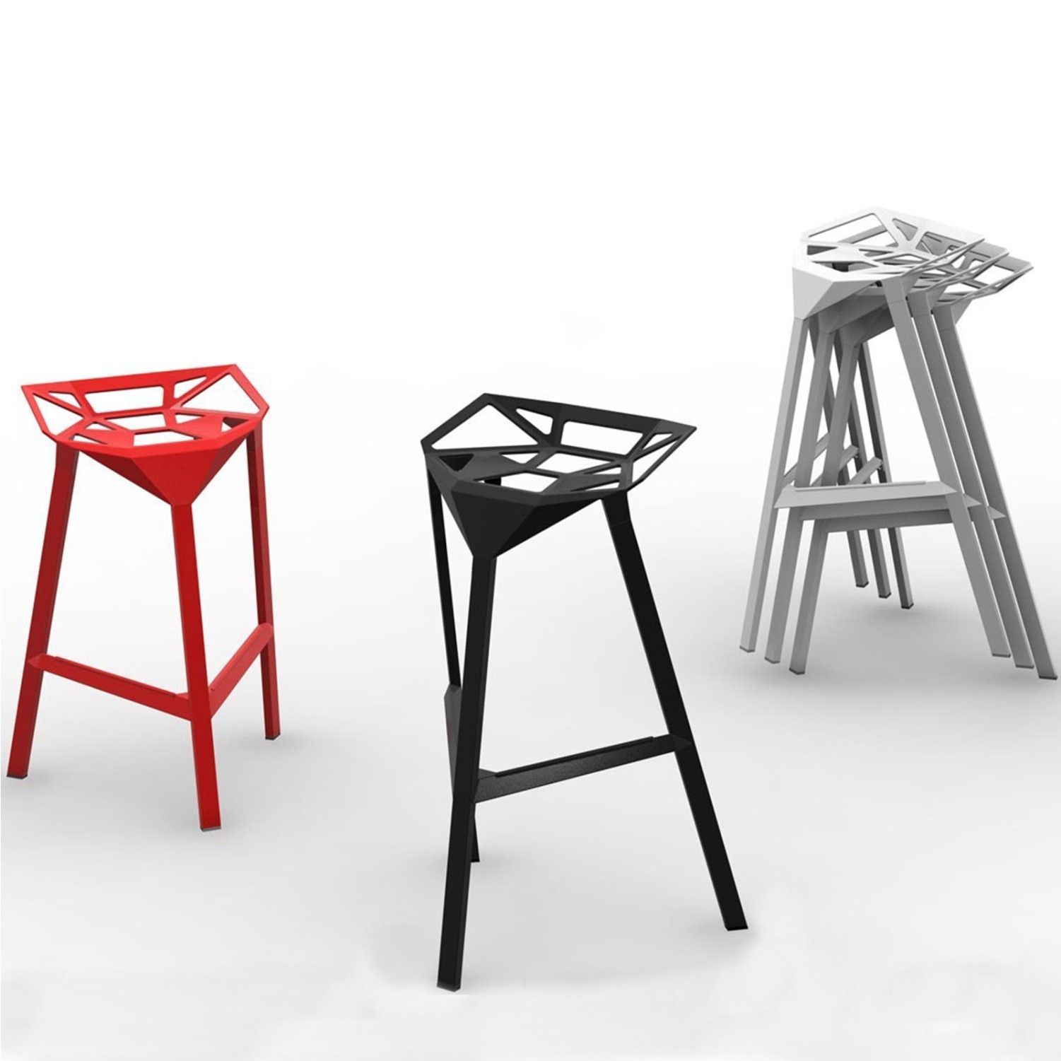 Stool One(几何吧凳/变形金刚吧凳)是德国设计师Konstantin Grcic(康士坦丁·葛切奇)的设计作品。 Stool One(几何吧凳/变形金刚吧凳),镂空钻石的坐面设计,棱角的触感更时尚大气,视觉上的冲击,艺术的价值,无论搭配什么样的环境,都是显得那么融入,那么个性。是现代风格酒吧、家庭吧椅理想的选择,坐感舒适,用材讲究,超现代风格,是一把艺术性与实用性相结合的经典。