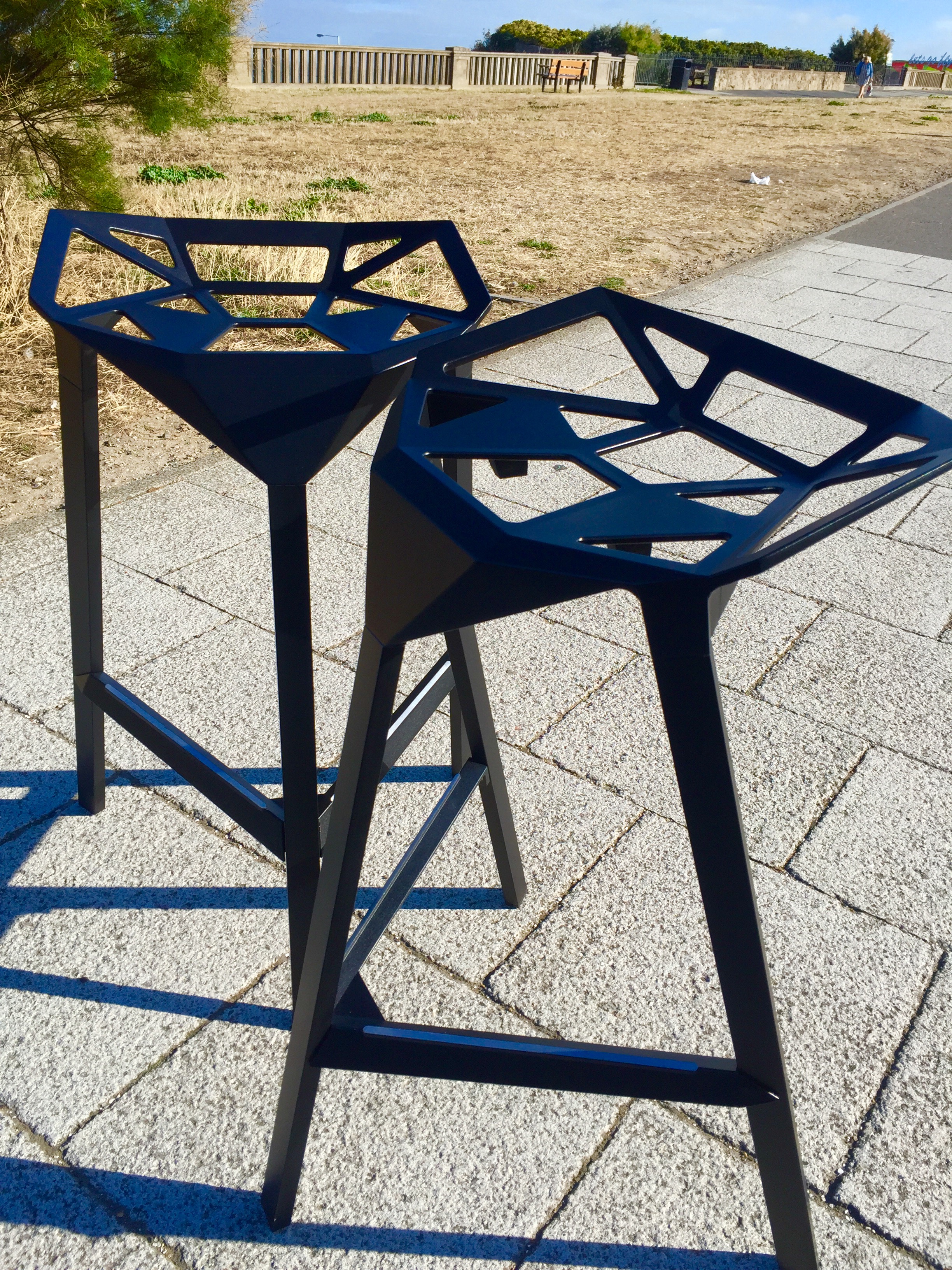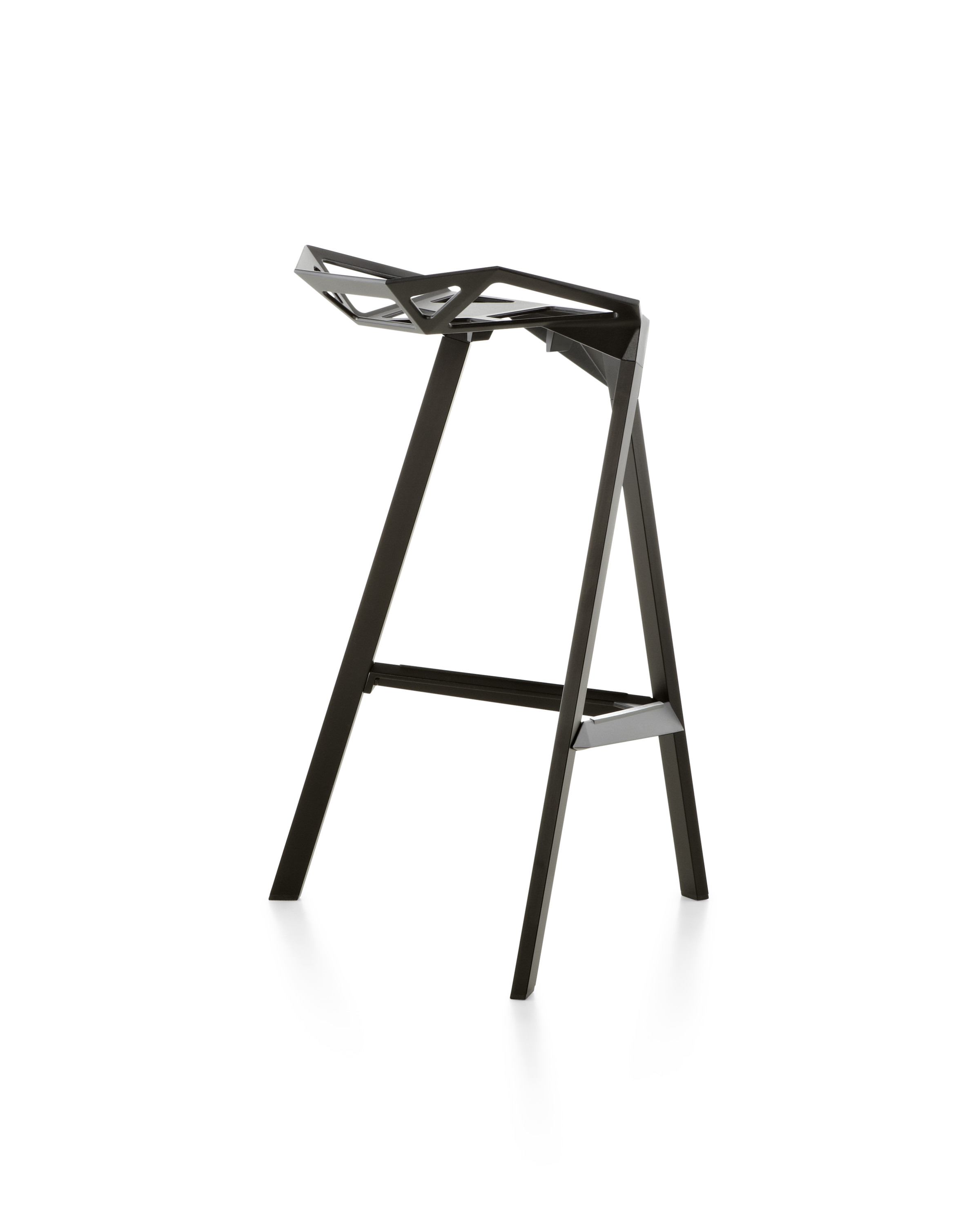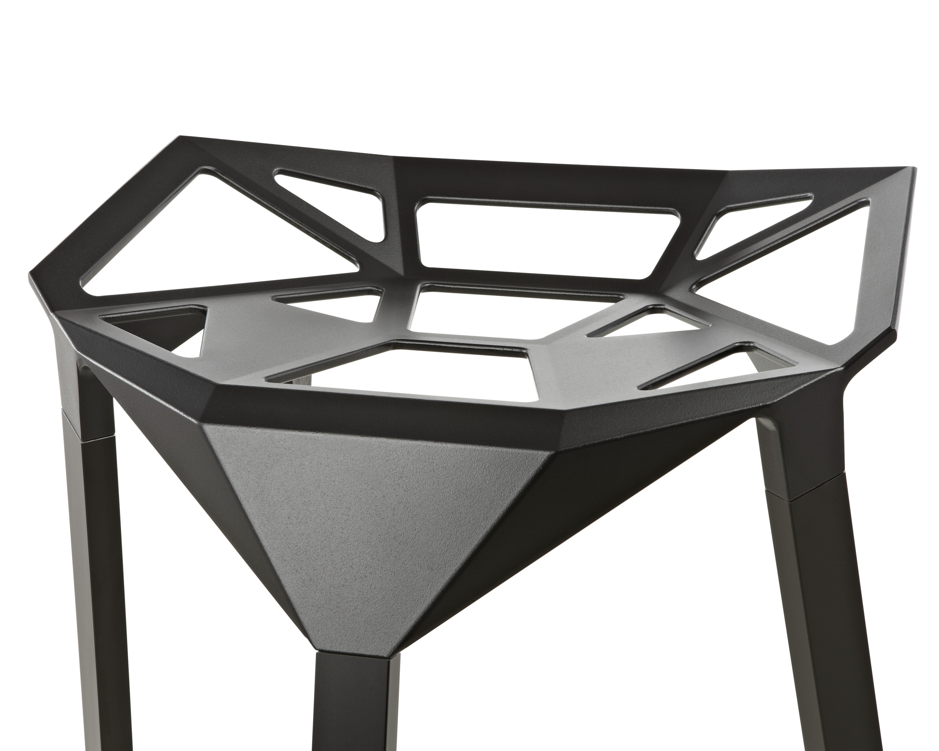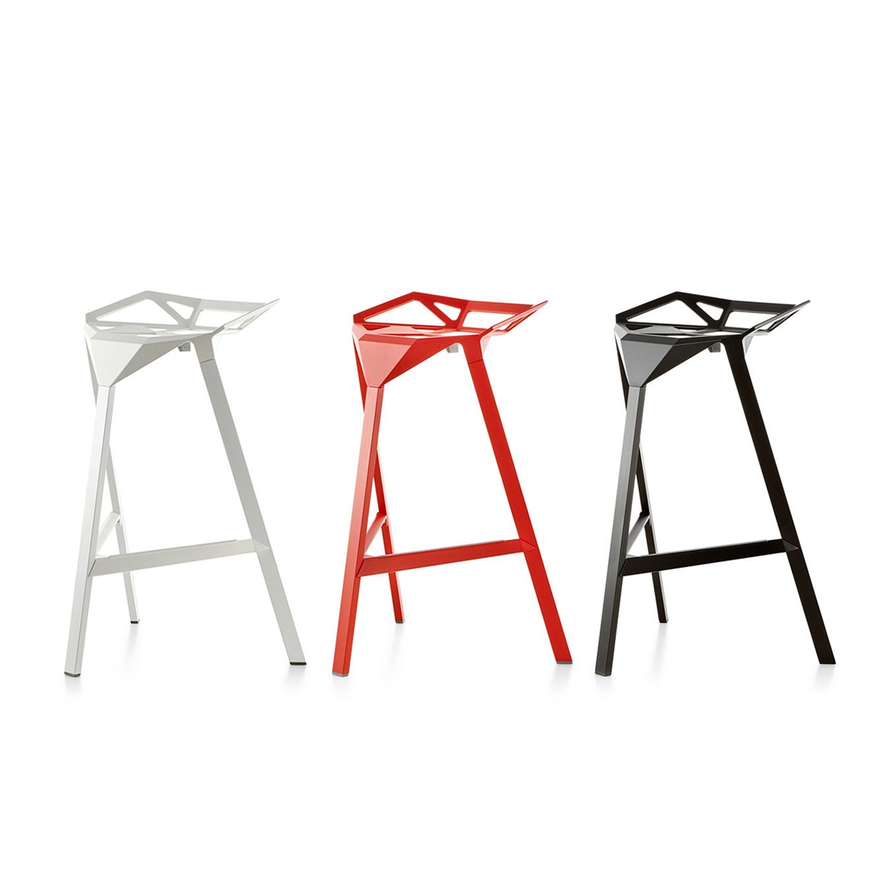 Stool One(几何吧凳/变形金刚吧凳)是德国设计师Konstantin Grcic(康士坦丁·葛切奇)的设计作品。 Stool One(几何吧凳/变形金刚吧凳),镂空钻石的坐面设计,棱角的触感更时尚大气,视觉上的冲击,艺术的价值,无论搭配什么样的环境,都是显得那么融入,那么个性。是现代风格酒吧、家庭吧椅理想的选择,坐感舒适,用材讲究,超现代风格,是一把艺术性与实用性相结合的经典。
