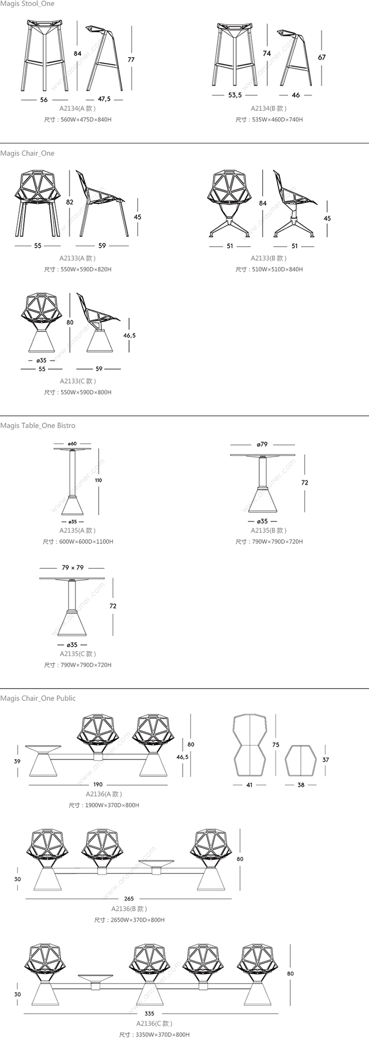 Magis 系列尺寸/示意图