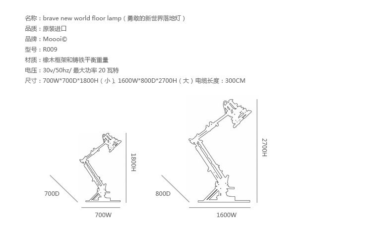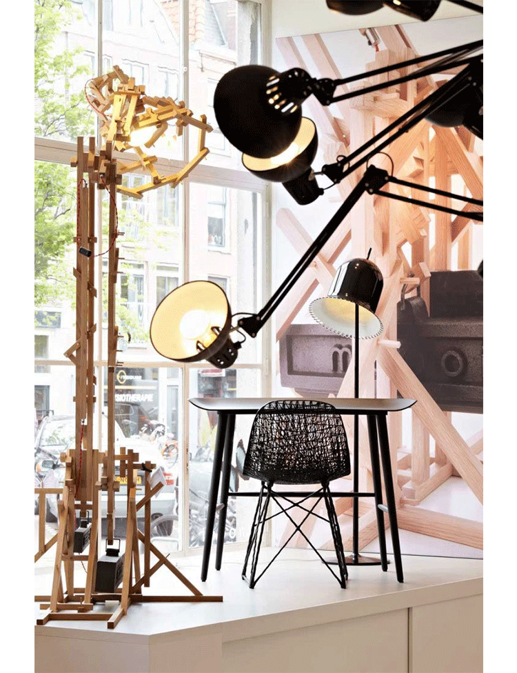"in a brave new world imagination is free to produce a complex lamp with simple materials, translating the warm soul of the oak wood in a mechanic way.""the brave new world lamp by design duo fresh west started as a concept piece of random thought-initiated construction. Following the example of old far eastern bamboo scaffolding or simply of our childhood meccano creations, the brave new world lamp was developed without a design or plan in place. Nevertheless each piece of wood is carefully notched and pegged together to form an integral part of the overall mechanical structure." Material: Oak frame and cast iron balancing weights"