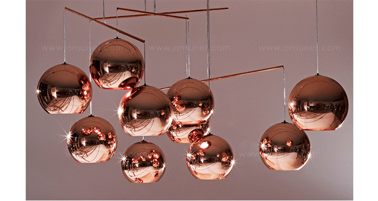 A pendant light made using copper, a material more commonly associated with solar cells and microwave radiation. The Copper Shade is created by exploding a thin layer of pure metal onto the internal surface of a polycarbonate globe. The result is a highly reflective surface with a warm metallic glow.