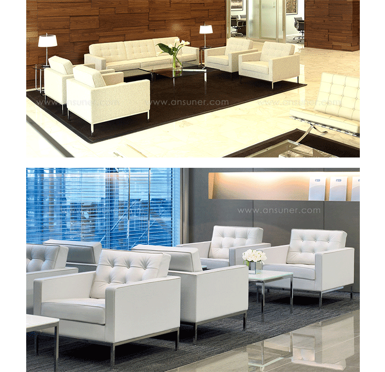 The upholstery of this chair is Italian leather,which is healthy and environmental-friendlyno allergy to skin, no pollution to environment;The pipings and buttons of Florence Knoll Sofa Florence Knoll Sofa florence knoll setteeare in the same Italian leather,no scratching off for years;The cushions are high elastic foam, offering a comfortable seating feeling and no losing shape for years;Two seaters,three seaters are available.