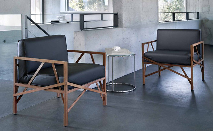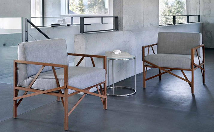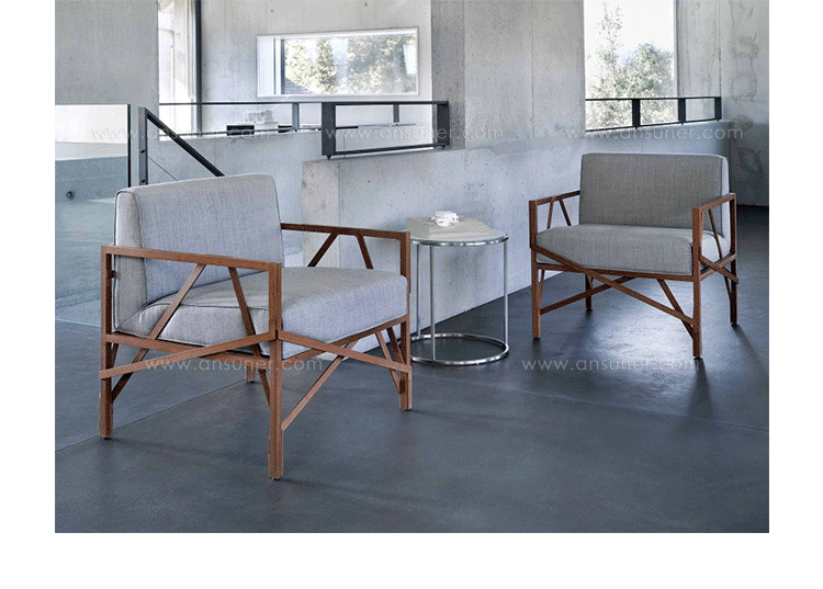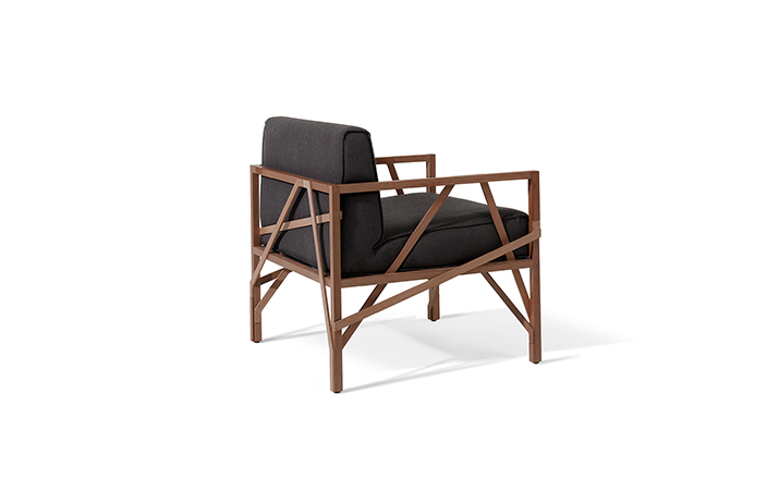 瑞士设计师Atelier Oï为Röthlisberger设计的一款沙发系列名为“Allumette(火柴)”,有单座、双座和三座。ALLUMETTE 沙发的醒目外观是归因于其来自阿鲁拉豆木树的硬木雕刻镂空框架设计。在这里,压力和反压力接受负荷的相互作用。优雅和独创性与稳定性相结合。其金属般基调的非漆木材经过打磨、抛光处理,允许其感性的存在,以充分发展。坐垫及靠垫内部填充高密度海绵、表面扪进口羊绒布或麻布或PU或真皮,提供高度的舒适感。