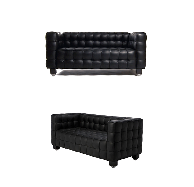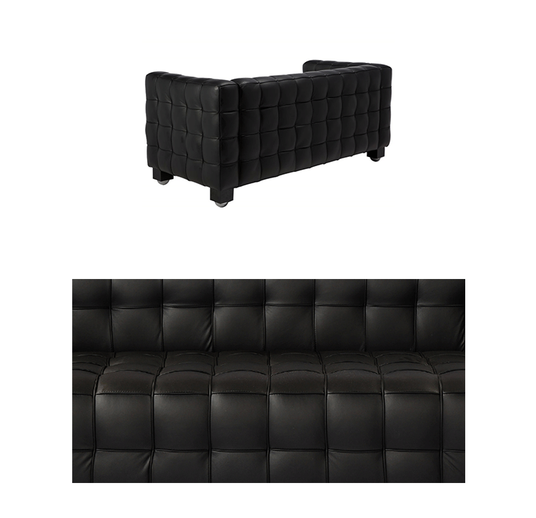 This high quality reproduction of the Josef Hoffmann Kubus Sofa features a handcrafted hardwood frame graciously lined with polyurethane foam.The surface is luxuriously soft to the touch, compliments of its premium 100% Top-Grain Aniline leather upholstery.This premium reproduction is generously proportioned to original full-scale size and cube count. Precision stitched & aniline leather piped tactile cubes create a thick body of cushioning that is so comfortable you’ll understand why this sofa has been a modern classic for nearly a century.For those looking for historic significance in midcentury modern furnishings,the Hoffman Kubus is a certain candidate.