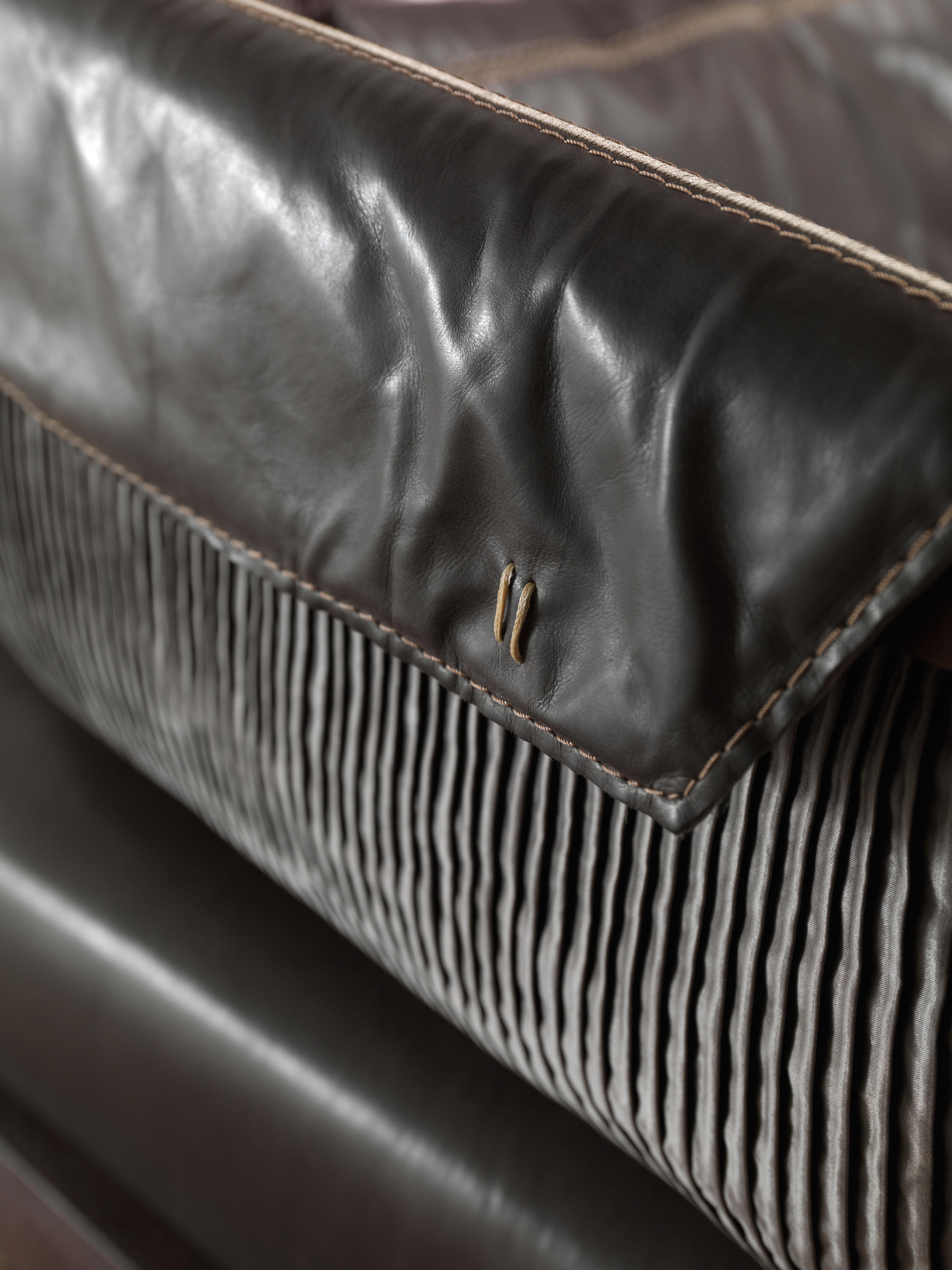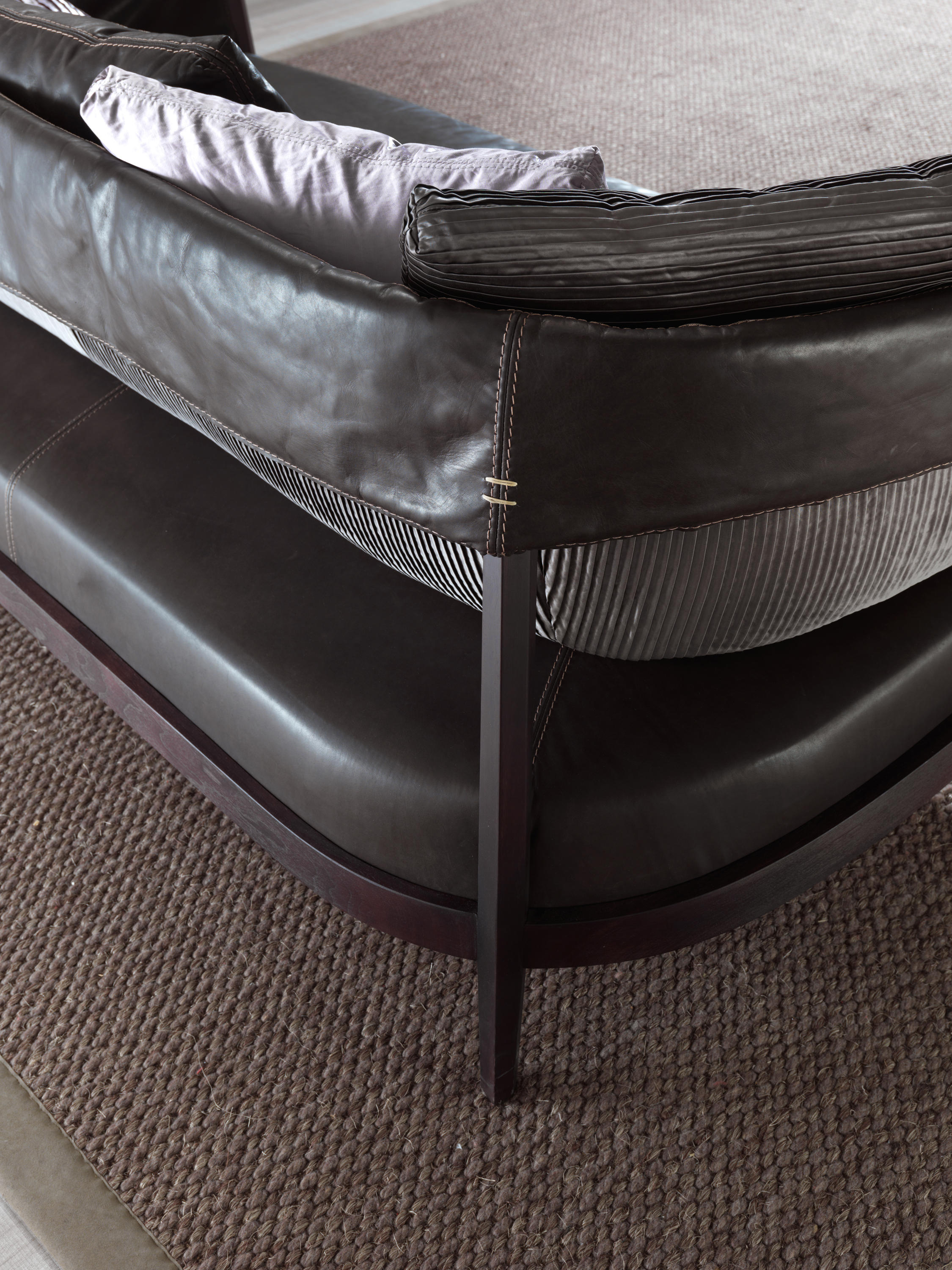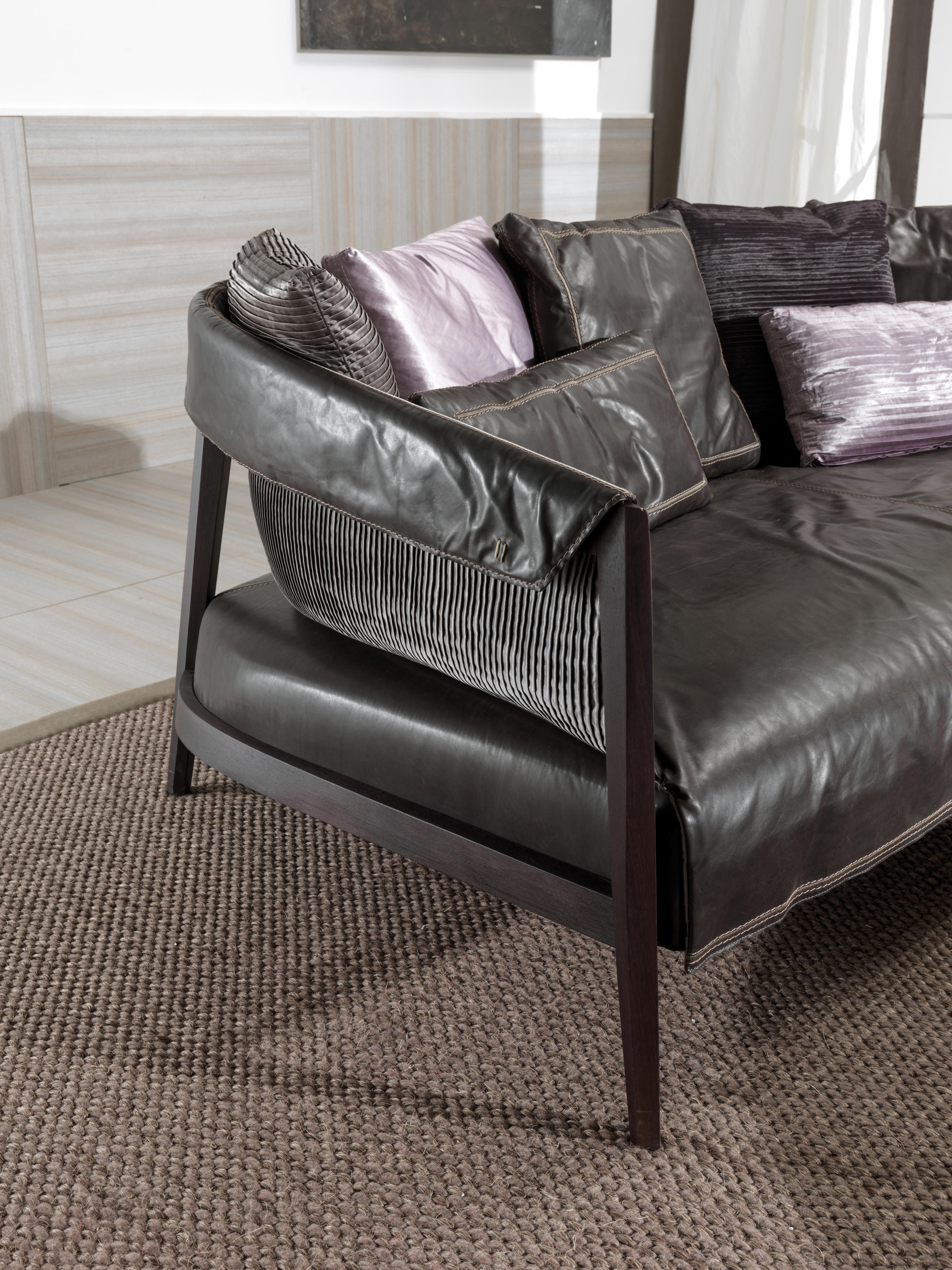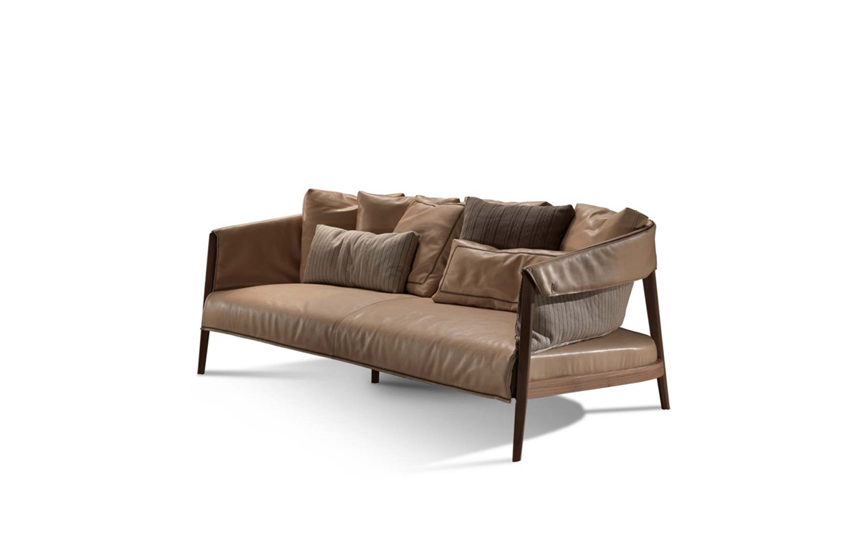 沙发,打破了经典模式和要求的同时,其结构简单,线性结构是:绝对的硬木是笼罩由皮肤褶皮瓣耦合到织物或对比,赋予了男性所组成,但impreziosita精制的刺绣。