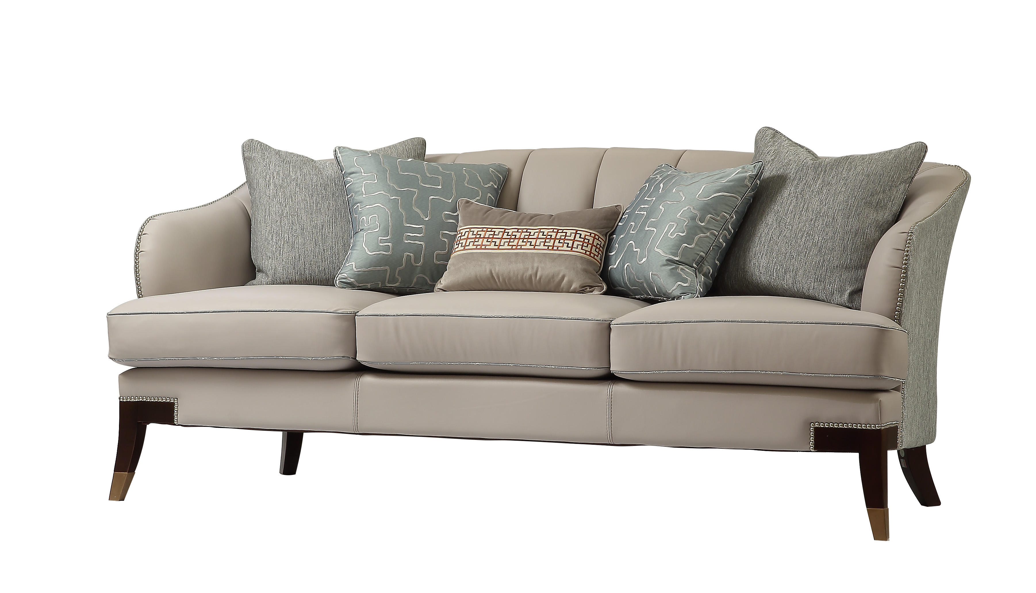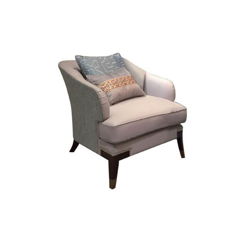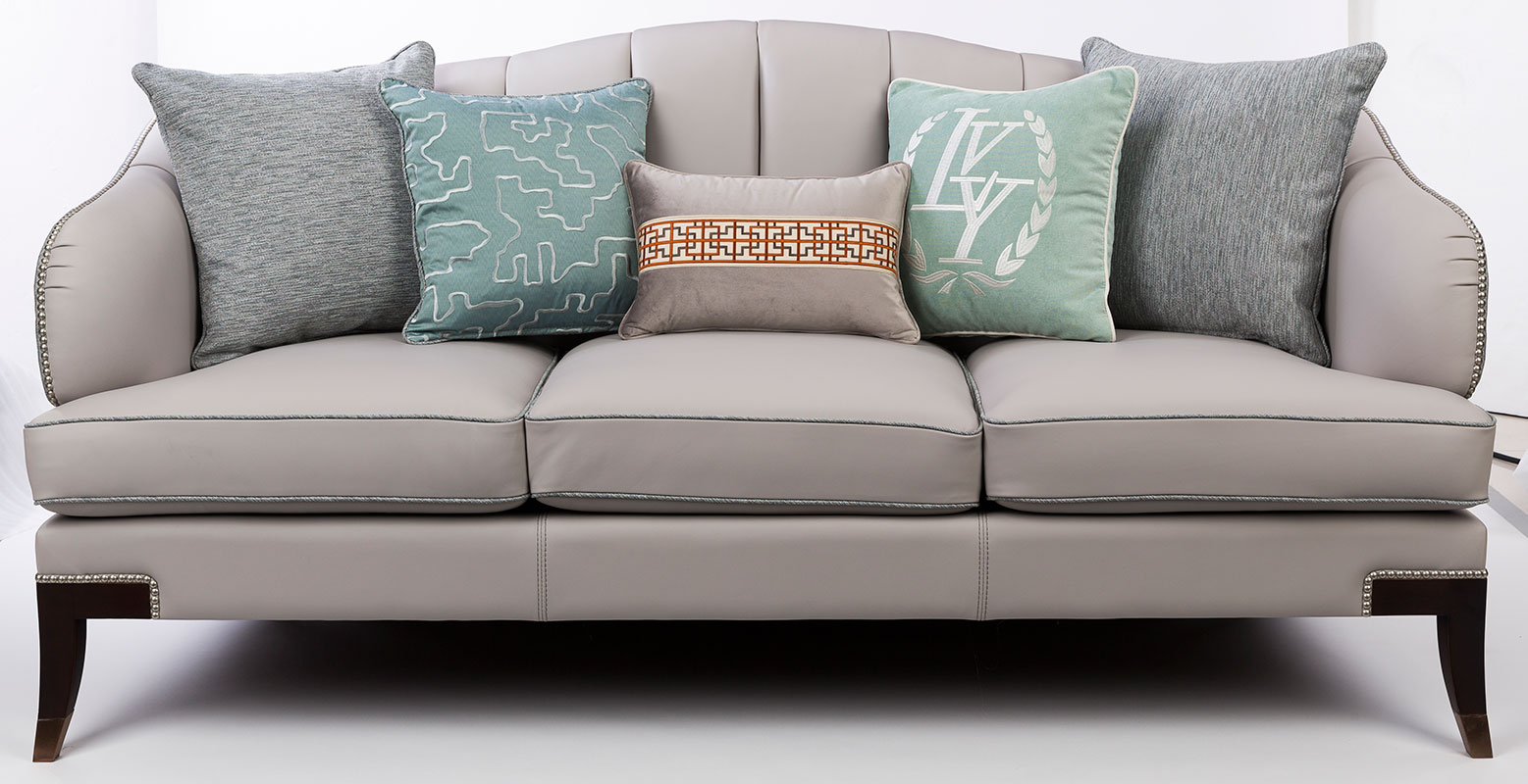 浅灰与蓝灰的搭配,简洁雅致;以流畅的弧线贯穿整个靠背,符合人体工程学。完美的皮布结合工艺,由经验丰富的技师手工独立完成,确保美观、耐用,皮革耐污易打理,布艺给人柔软、舒适之感;铜脚,赋予中式韵味的同时以防磨损。