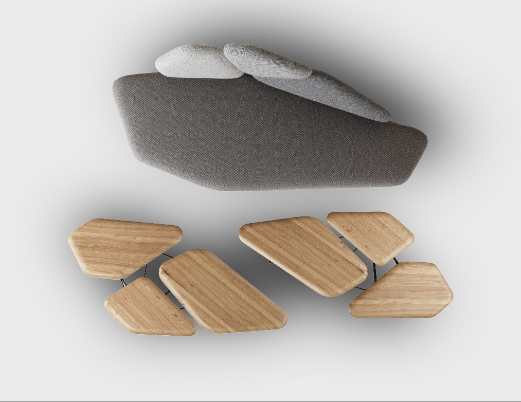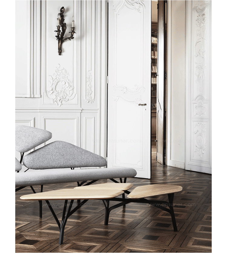 “波”是一个光沙发受到石头松树波勒兹别墅的罗马。 金属结构再现了分支网络和支持缓冲,合奏创造一个舒适的景观。