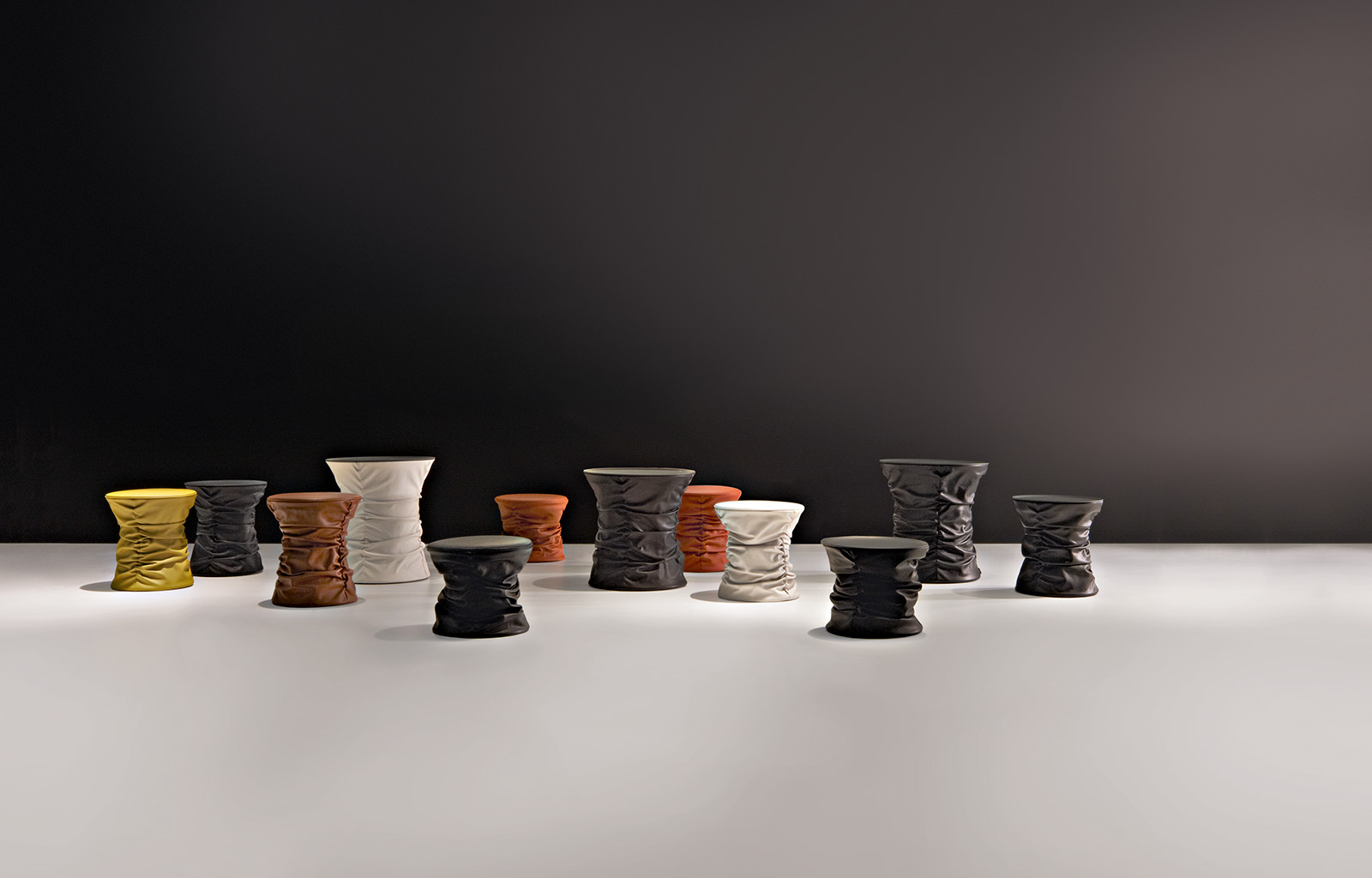 创新的设计源于对不寻常的想法进行塑造的勇气。Bellows Collection系列就是一个例子,凳子和桌子的设计令人眼前一亮,并达到了我们的预期。柔软的皮革褶皱的包裹在坚固的框架上。褶皱程度随着它的高度而改变。用一个最简单的动作,便可以利用隐藏于座椅下的环形扳机进行高度调节。