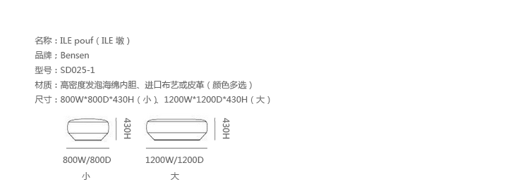 ILE Pouf(ILE 墩)由 Niels Bendtsen设计,像个u形槽,线条简洁流畅,朴实无华做工却十分精细。可贵的是,它不仅仅是用来垫脚,还可以当做座椅。制作采用高密度发泡海绵内胆、进口布艺或皮革(颜色多选),裹面织布(皮革)可拆卸,方便清洗保养。