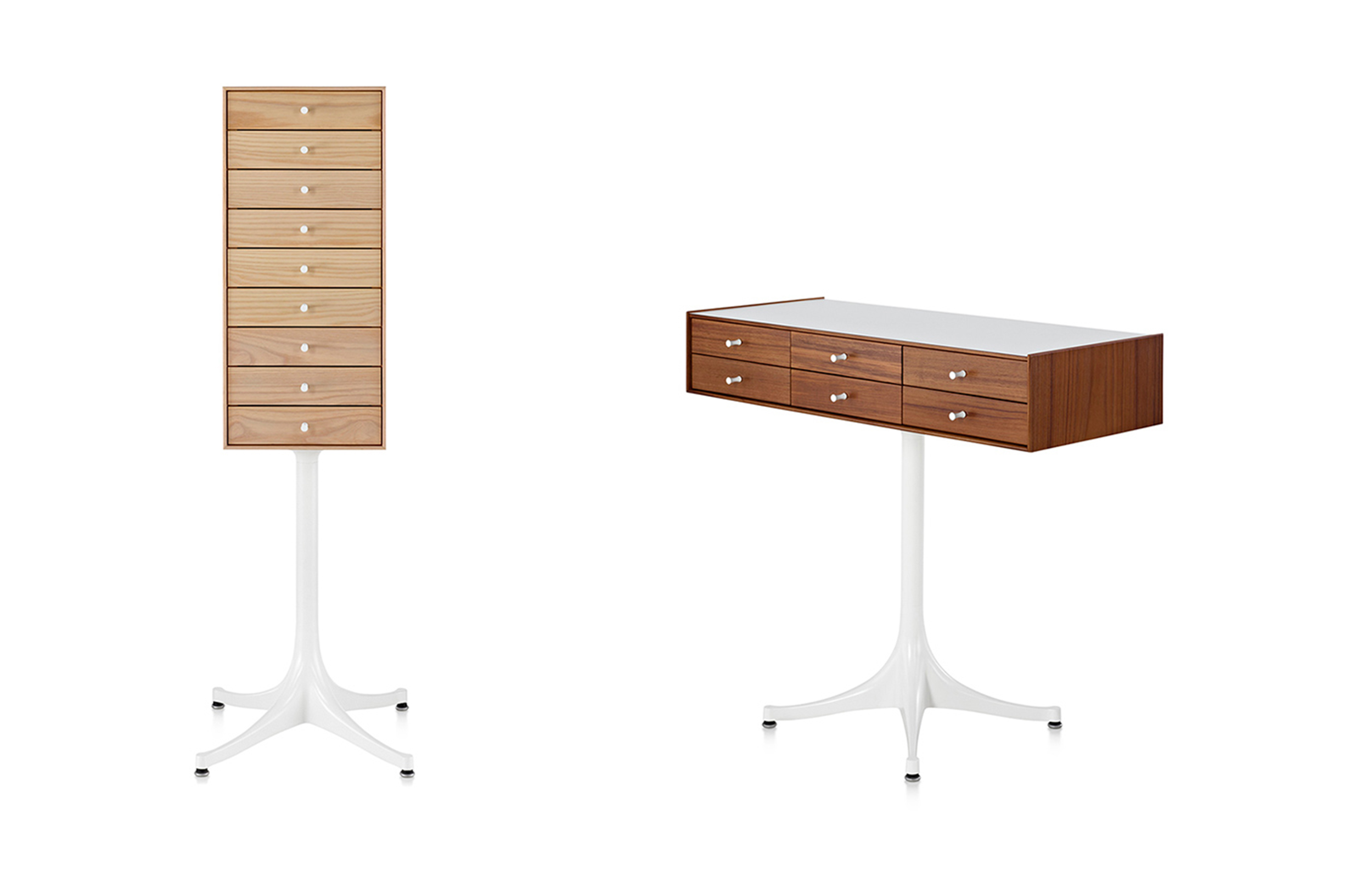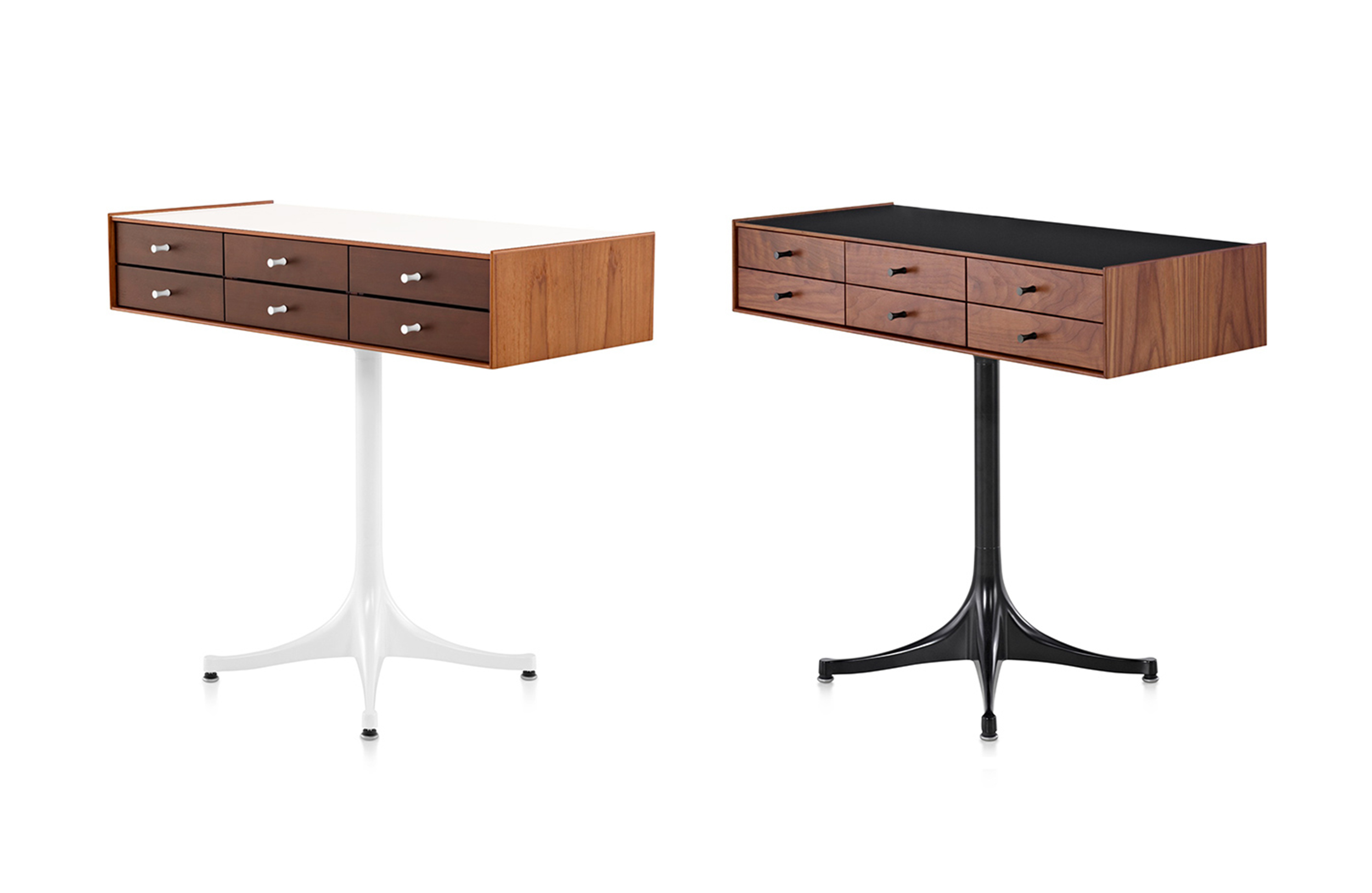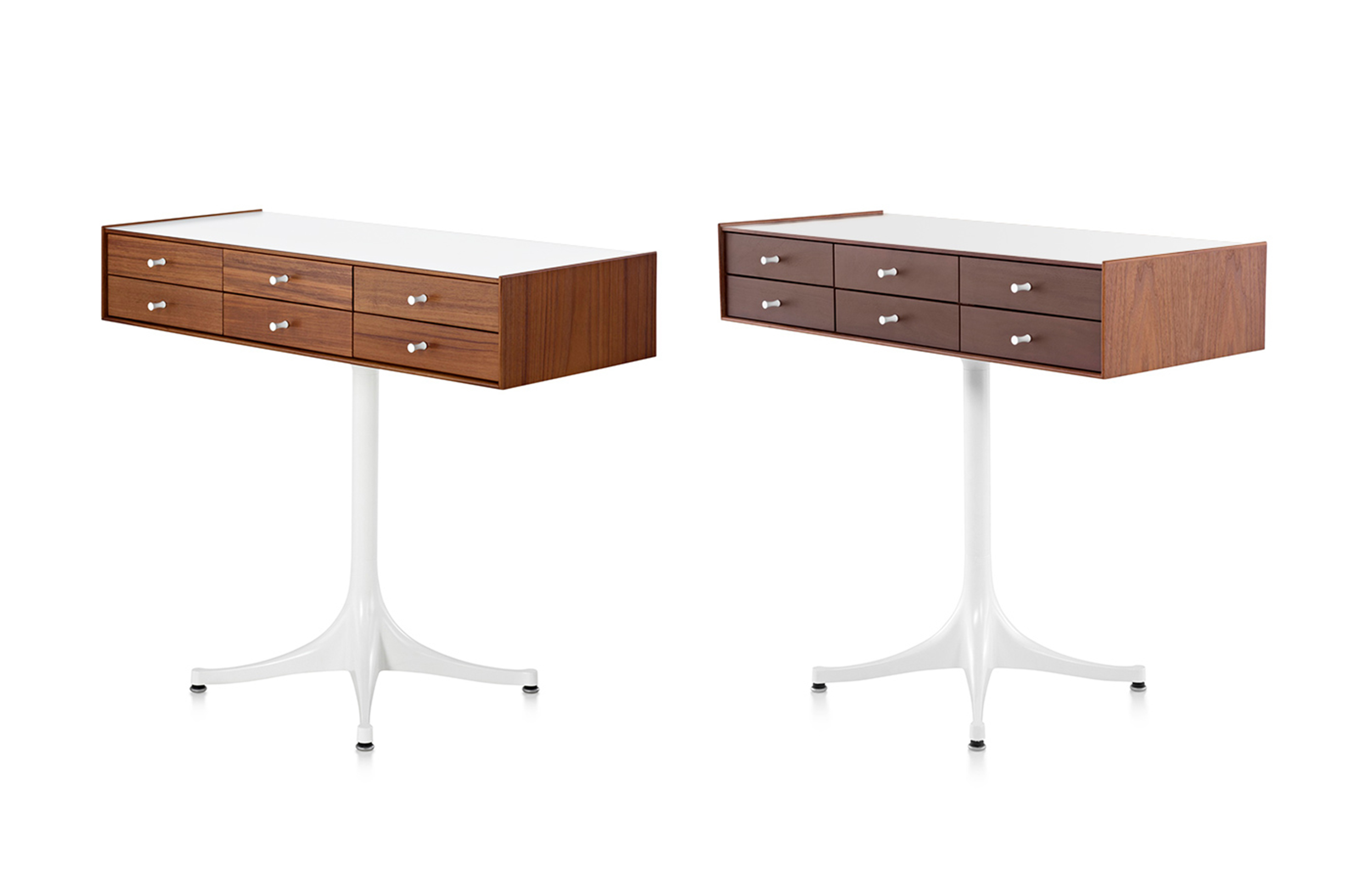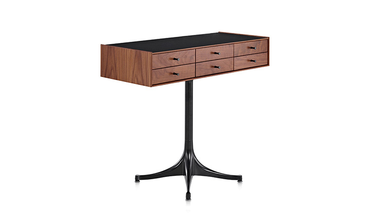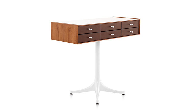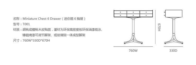 乔治·尼尔森(George Nelson)是美国极具影响力的建筑师、家具设计师和产品设计师,日本对George Nelson有着深远的影响。在他于1951年第一次到东京旅行,以及之后在那里的十几年,George Nelson迷上了日本的所有东西。这种影响最明显的的他于1952年设计的迷你箱。迷你箱的神奇处是可用来存放各种物品,是一个很多小抽屉小储物柜,方便您分类摆放各种生活物品。尼尔森设计的迷你箱最让人惊奇的是它几乎可以摆放在任何房间,无论是卧室,办公室,客厅等等任何您需要的地方,美观且不失和谐。每个抽屉都是木工们细心的安装设计,以保证高品质。抽屉采用胡桃或樱桃木皮贴面,基材为环保高密度板环保油漆喷涂、铸铝烤漆可调节脚架(4星级铝底座)、或玻璃钢一体成型脚架,抽屉贴心的配置有金属旋钮,方便打开与关上。