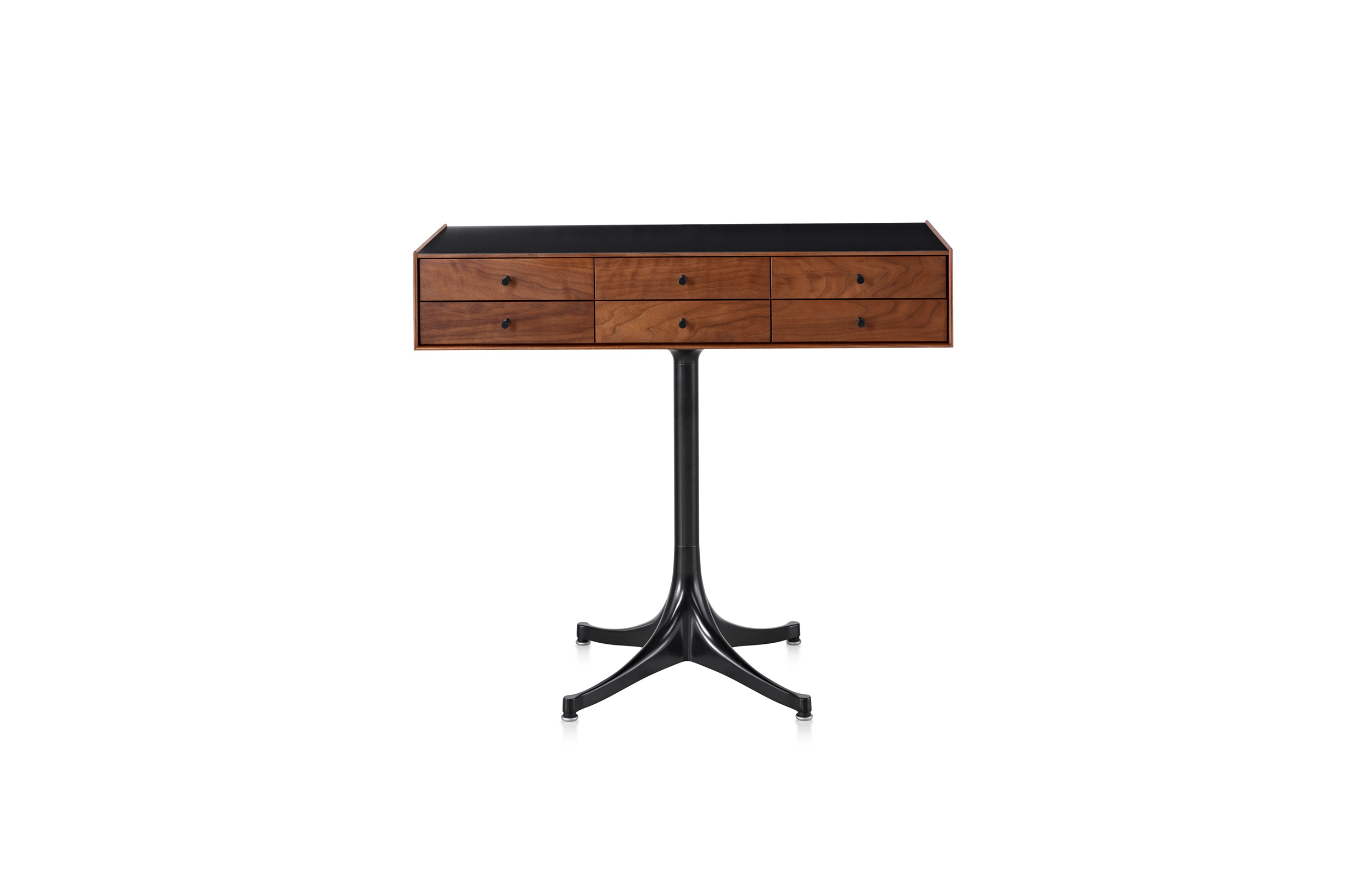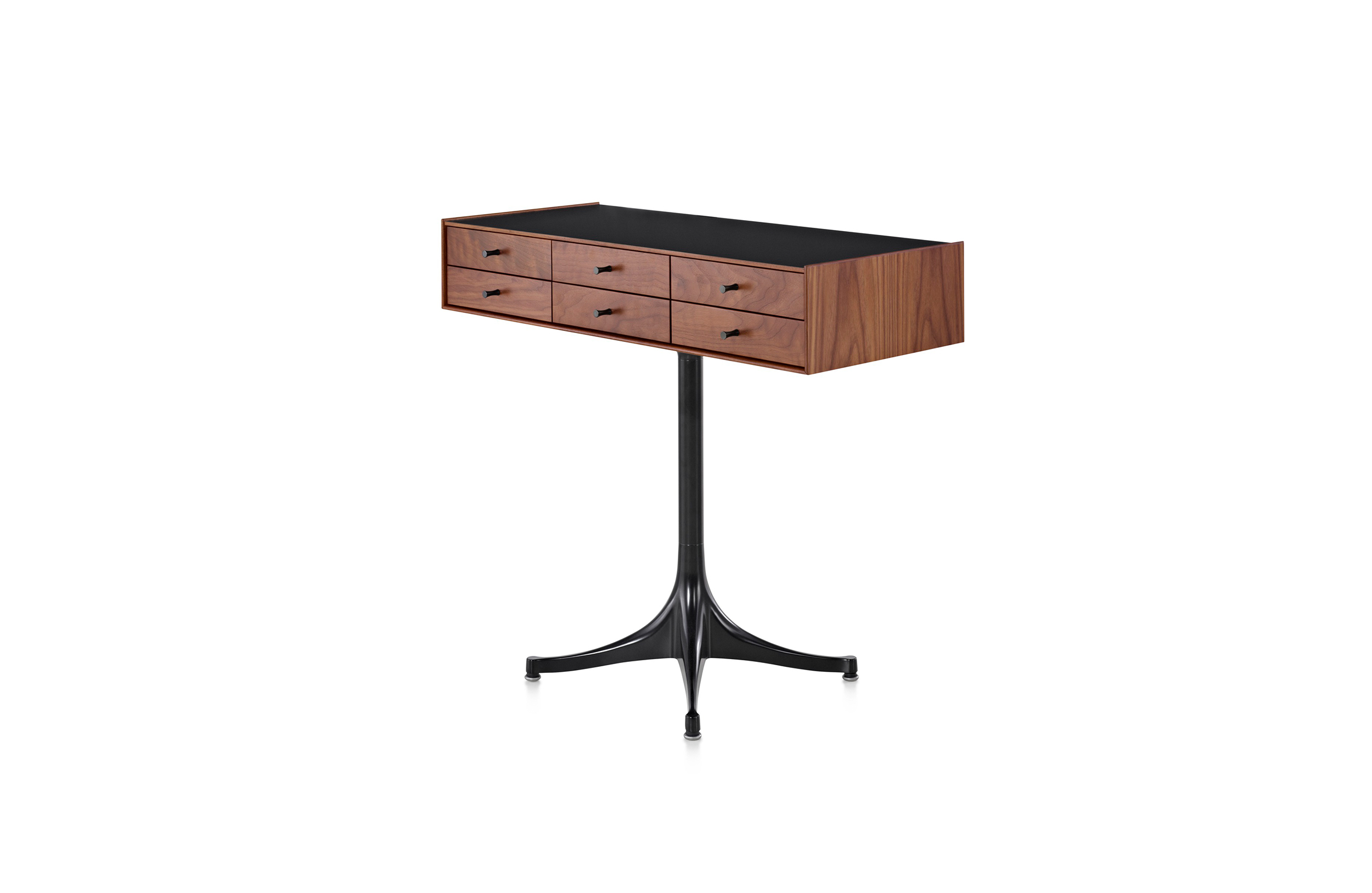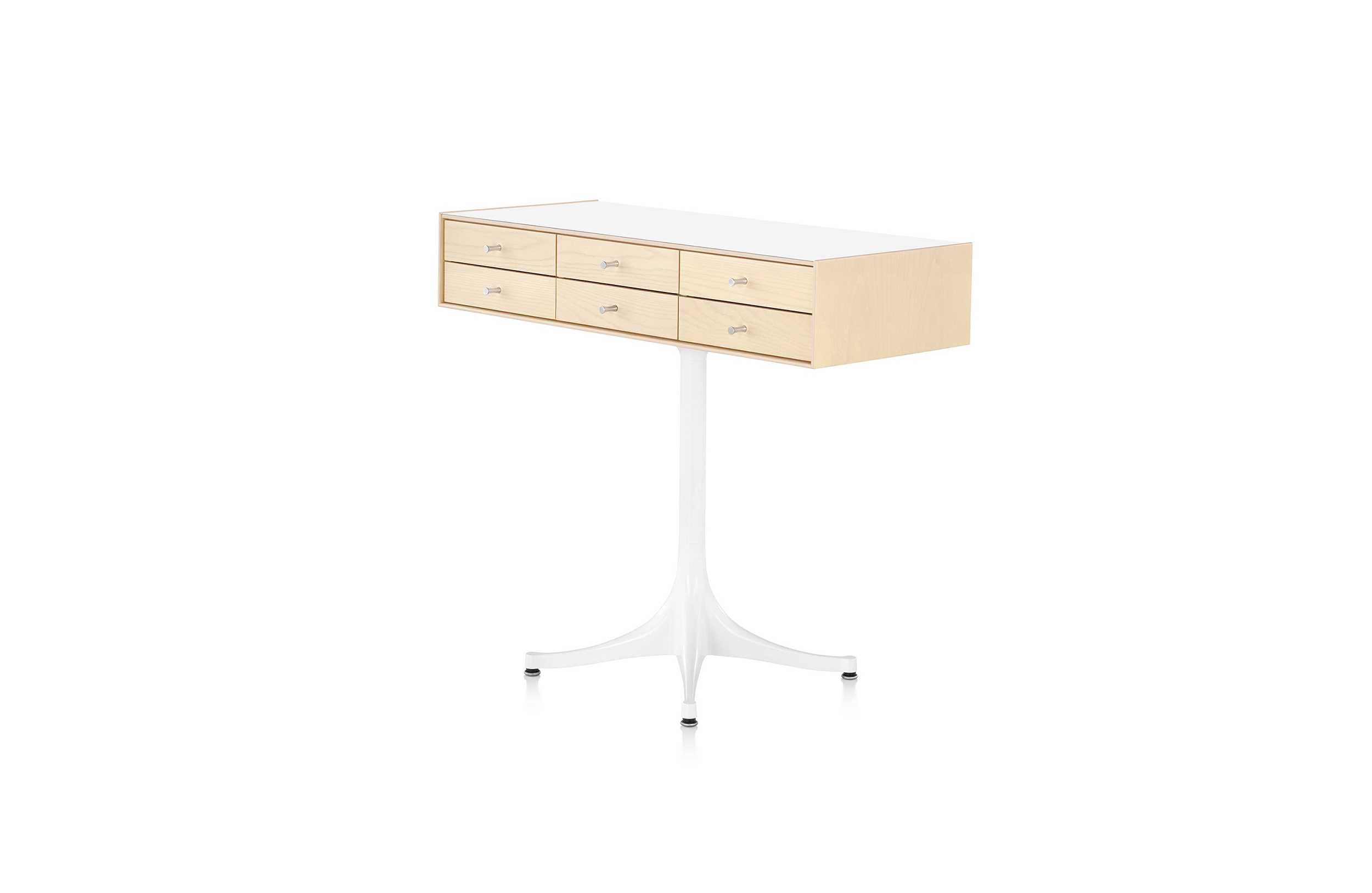 乔治·尼尔森(George Nelson)是美国极具影响力的建筑师、家具设计师和产品设计师,日本对George Nelson有着深远的影响。在他于1951年第一次到东京旅行,以及之后在那里的十几年,George Nelson迷上了日本的所有东西。这种影响最明显的的他于1952年设计的迷你箱。迷你箱的神奇处是可用来存放各种物品,是一个很多小抽屉小储物柜,方便您分类摆放各种生活物品。尼尔森设计的迷你箱最让人惊奇的是它几乎可以摆放在任何房间,无论是卧室,办公室,客厅等等任何您需要的地方,美观且不失和谐。每个抽屉都是木工们细心的安装设计,以保证高品质。抽屉采用胡桃或樱桃木皮贴面,基材为环保高密度板环保油漆喷涂、铸铝烤漆可调节脚架(4星级铝底座)、或玻璃钢一体成型脚架,抽屉贴心的配置有金属旋钮,方便打开与关上。