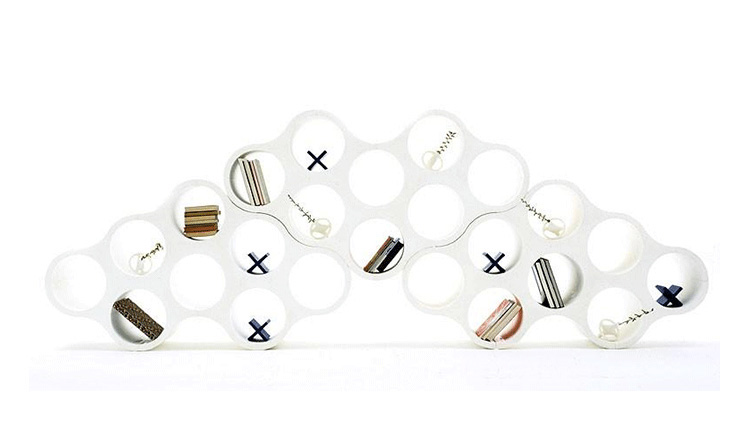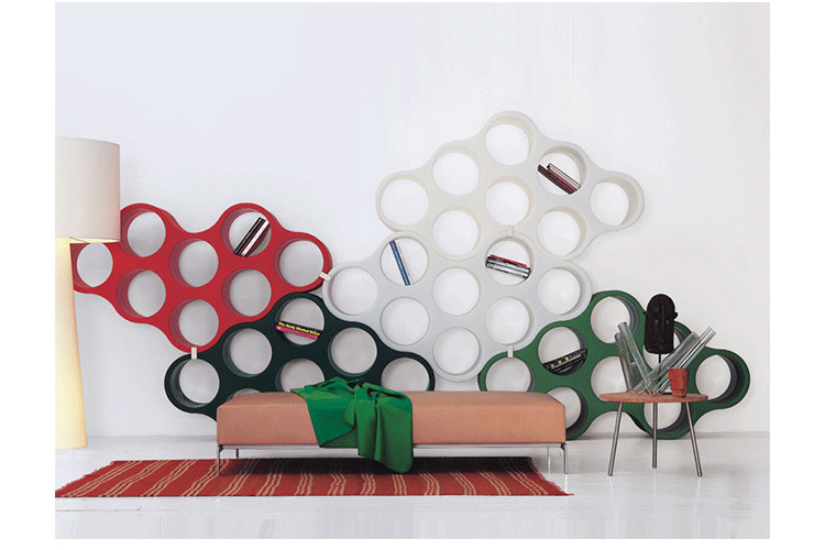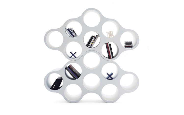 Cloud Bookcase(云朵书架)是一个模块化、 双面书架,由白色聚乙烯材质做成(颜色可选),由Ronan & Erwan Bouroullec兄弟两设计的。书架元素使用旋转技术制造而成,可水平或垂直放置,可单独使用或多套组合,看起来就像一朵云彩。Cloud Bookcase(云朵书架)恰如其名,将整体书架的形貌,刻画地有如云朵一般,飘逸而动感,双面相同设计,运用玻璃钢高塑性的材质优点,带来耐用而前卫的作品风貌。每一件书架均为八孔设计,书架与书架间可相互接合,重叠搭配,带来更多色彩,更多形貌的设计可能。
